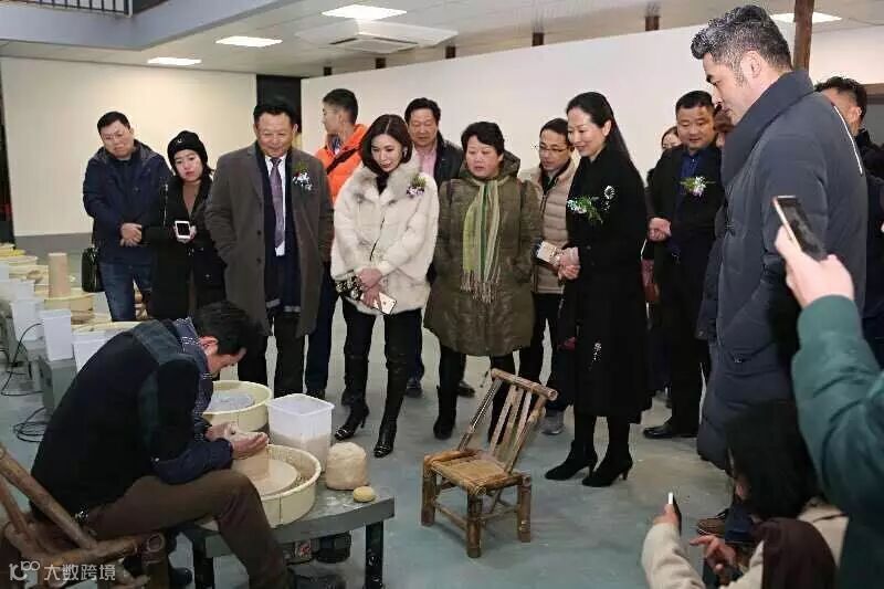 揭牌仪式结束后,总经理带领来宾参观越青堂青瓷艺术馆并为现场人员讲解。