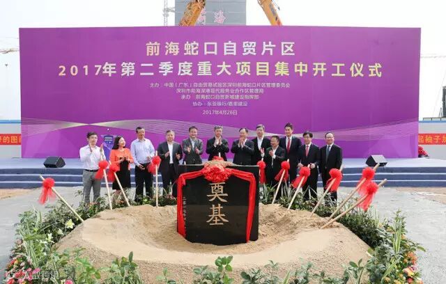 4月26日,在前海蛇口自贸片区挂牌两周年之际,前海蛇口自贸片区2017年第二季度共5个重大项目集中开工,预计总投资达171亿元。