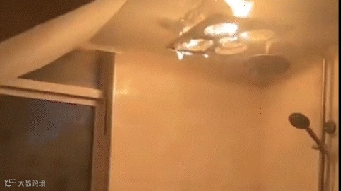 2023年12月1日,安徽省一居民家中浴霸起火。据视频显示,该居民发现起火后直接用水泼了上去,浴霸瞬间炸裂,火星飞溅,内部的火焰仍未熄灭。