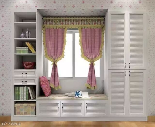 飘窗大改造,设计成半开放式组合柜,左边书柜、右边衣柜、下面是杂物柜,储物量轻松翻倍。