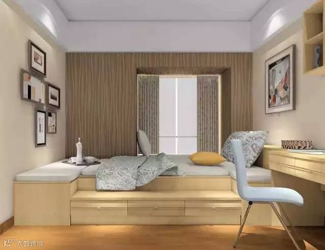 房间小收纳量不足?榻榻米床的设计连衣柜都省了,然后你还可以再打造一个办公区。