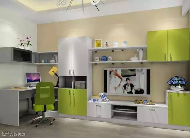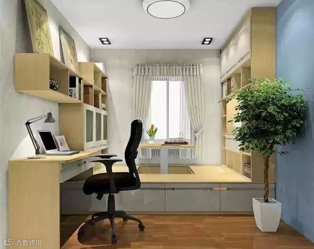 利用转角空间打造转角书桌和柜体,小书房立马装进客厅。