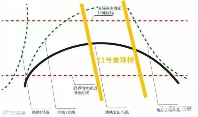 双界河水廊道和11号景观桥项目涉及地铁保护施工区域示意图
