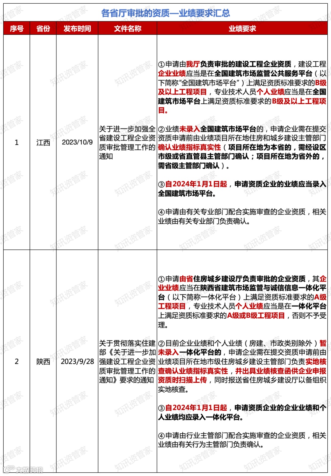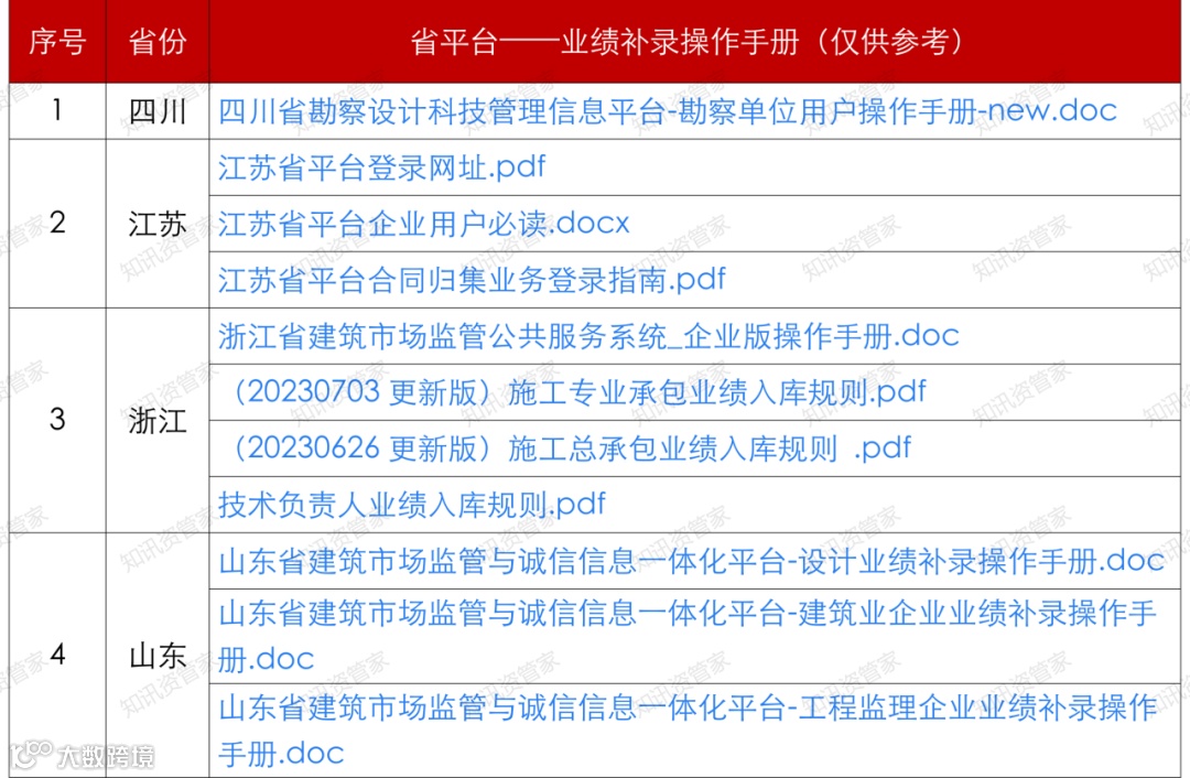 ② 浙江、陕西:申请省厅审批的资质,企业业绩需省平台A级项目,个人业绩需省平台A级或B级项目;