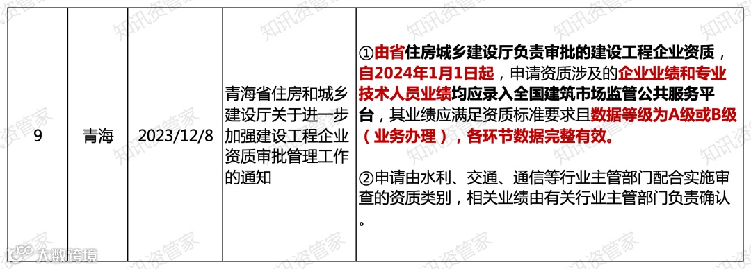 自2024年1月1日起,申请资质企业的业绩应当录入全国建筑市场平台。