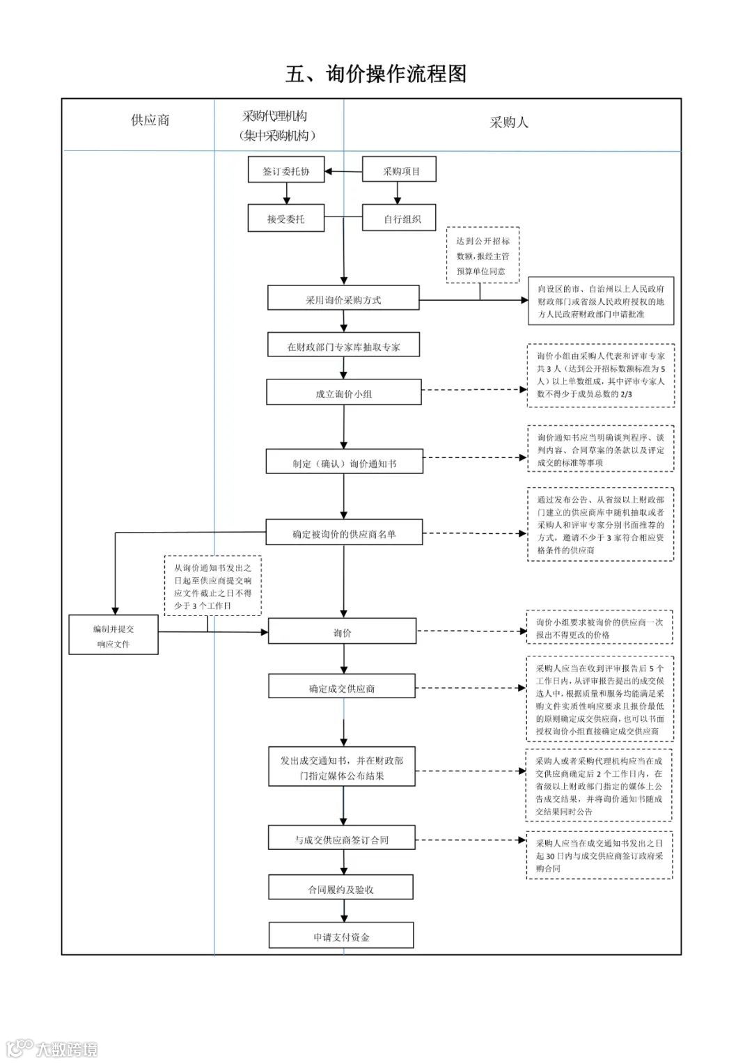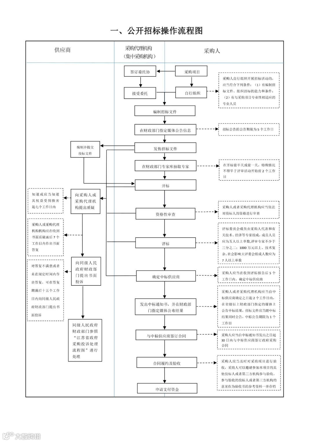 江苏省财政厅政府采购处发布了6张操作流程图,包括公开招标操作流程图、竞争性谈判操作流程图、单一来源操作流程图、邀请招标操作流程图、询价操作流程图、竞争性磋商操作流程图,非常值得学习、借鉴。