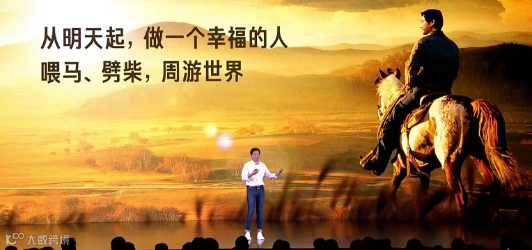 我跟同志们认真地说,我再也不用关心股价了,那些股票软件对我来说也没用了。从明天起,做一个幸福的人,喂马、劈柴,周游世界。