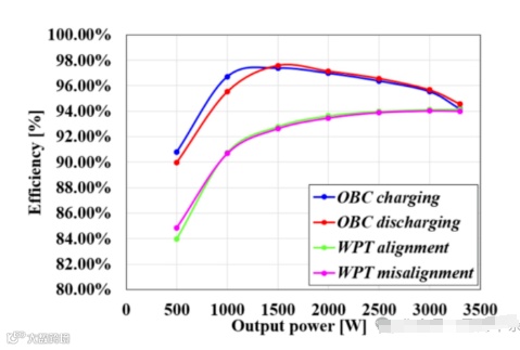 图7、系统在车载充电(OBC)与无线电力传输(WPT)模式下的实测效率