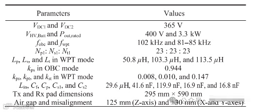 基于所提出的拓扑结构和磁耦合器设计方法,该系统在OBC模式下可作为传统双有源桥(DAB)变换器工作,在WPT模式下则作为LCC-S补偿变换器运行。