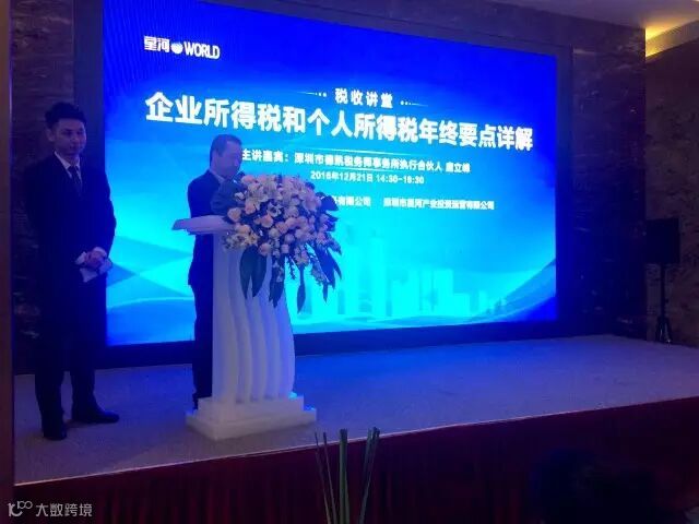 为支持前海与星河WORLD联盟战略合作的产业集聚、产业生态圈的创建,推动前海各产业板块的顺利发展,进一步为前海企业提供多层次、跨领域的发展支持与服务,结合前海与星河联盟工作部署,前海管理局全资直属公司深圳市前海联合发展控股有限公司旗下企业服务专业机构深圳市前海企业服务有限公司与深圳市星河产业投资运营有限公司于今日在深圳龙岗星河WORLD园区A栋二楼举办“税收讲堂:企业所得税和个人所得税年终要点详解”活动。