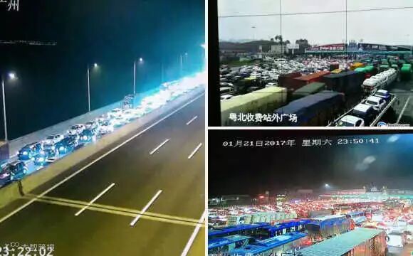 广东北上出省高速拥堵28公里成停车场