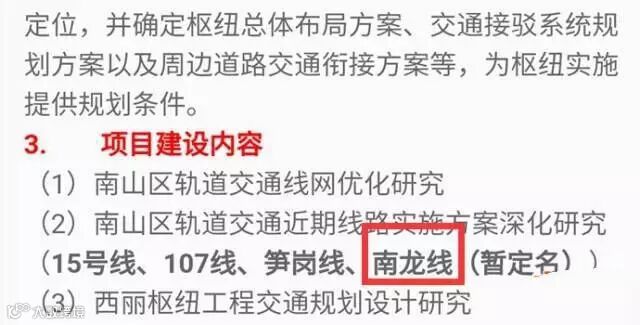 南龙线最早出自《南山区轨道交通前期规划研究咨询服务采购项目》,是南山区为了解决科技园拥堵所提出的规划建议。