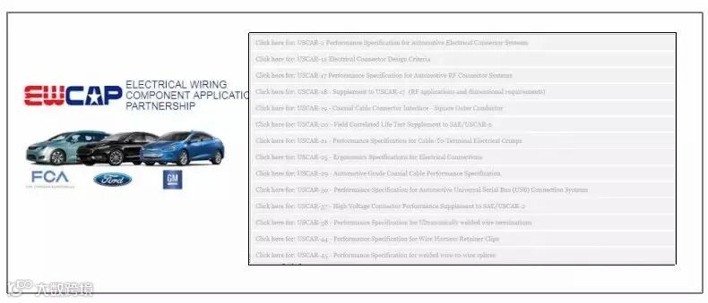 三大主机厂联合的线束连接组织EWCAP,之前在连线的论坛上也提到过,这个组织94年就已经成立,08年为了适应越来越多的HEV的要求,该组织更新了SAE-USCAR 2 ,将电压等级从原有的20V提升到了我们现在看到的600V。