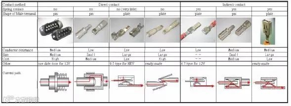 两种方式,对于圆形的我们在国内很多车型上都非常的常见,Amphenol TE 这些8mm及以上的大电流也都采用的是圆形的方式,在此不做过多叙述;对于“片式”的比较代表性的是类似kostal的PLK contact这种,从早期的日美混动车型发展来看,片式的应用还是比较多,比如早期的prius、 tssla都或多或少都采用了这种方式,包括 bmw bolt 一些部位也都采用了一些这种方式,从成本和热对流的角度来说,片式的确会比传统的圆形的簧式会好一点,但是我个人认为选择什么样的方式一方面取决于你实际的应用需求,一方面也和各家的设计风格有很大关系。