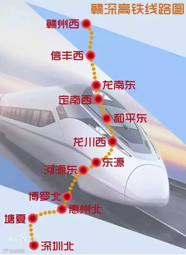即将动工、预计2020年建成通车的赣深高铁,将大大拉近深圳与河源的距离,并将进一步密切深莞惠地区的联系。为加强深圳与河源之间的交通联系,河源提出参照深圳坪山区利用厦深高铁固定班次的间隙开通坪山到深圳市中心的捷运化列车的做法,开通赣深高铁河源至深圳捷运化项目,共同促成在建设深河两地高铁站时按照捷运化客运站的方案进行规划建设。
