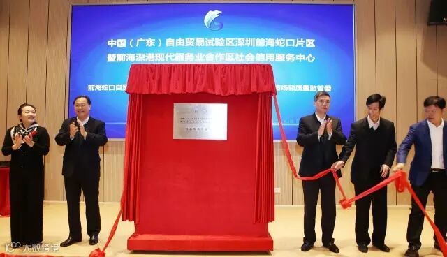 昨天,前海蛇口自贸片区暨前海深港合作区社会信用服务中心(下称“前海蛇口社会信用服务中心”)成立。市委常委、前海蛇口自贸片区管委会主任田夫,市政府党组成员、前海管理局局长杜鹏以及市市场和质量监管委、前海廉政监督局相关领导为中心揭牌。