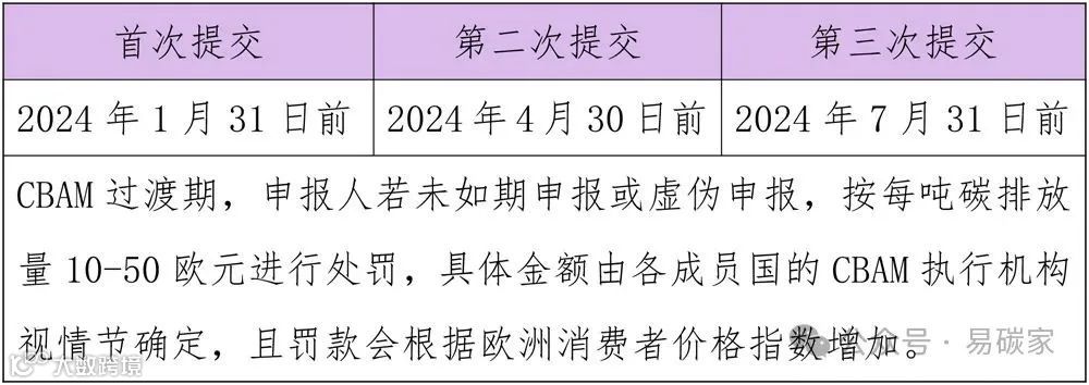 在过渡期CBAM报告有固定申报期间,申报人应在每个季度结束后一个月内提交CBAM报告,并且可以在每个季度结束后2个月内修正CBAM报告。过渡期前两次的报告有缓冲空间,可在第三个季度报告截止日前修正。按照下表类推报告提交时间。