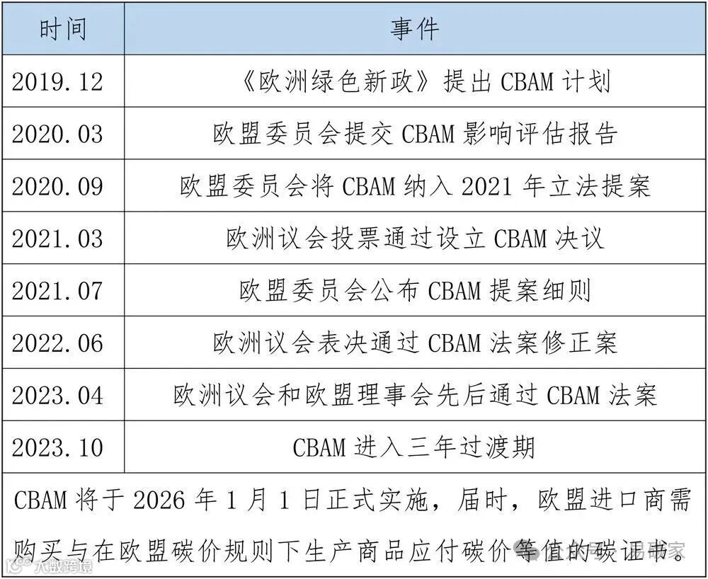 在过渡阶段,进口商应按照CBAM要求提交报告,内容包括进口产品的数量、碳排放量以及在原产国支付的碳价,过渡期不必支付费用。根据《碳边境调节机制》过渡期实施细则第7条规定,如果已在原产国对进口产品的碳排放有效支付了碳价,申报人可申请抵扣。在2026年正式运用后,欧盟进口商每年都需申报上一年度进口的商品总数及其隐含碳排放量,同时提交等价的CBAM证书。