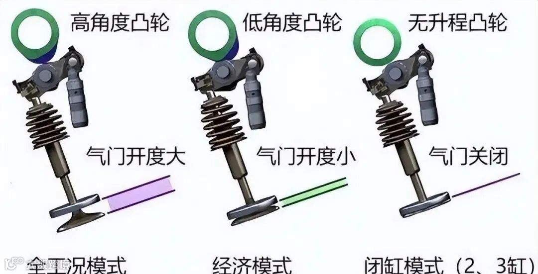 简单总结一下:闭缸技术的实现,主要就是通过断开凸轮与气门的连接,让凸轮没办法顶开节气门。各大厂家虽然用了不同的切换机构,但最终的目的都是一样的