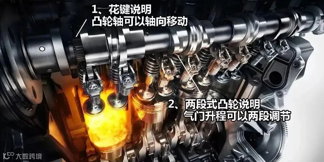 通过特殊的滑槽和滑柱,让凸轮轴可以横向位移,实现不同大小的凸轮和气门顶杆相连,达到闭缸的效果