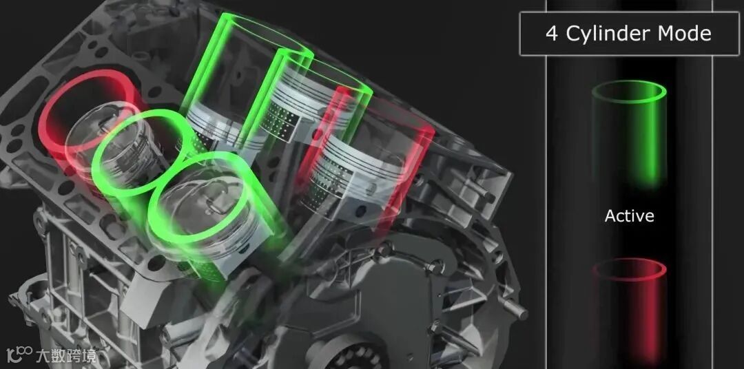 一台V8发动机如果采用闭缸技术,可以关闭一半的气缸,实现4缸发动机驱动,理论上来说最大节油效率可以达到50%