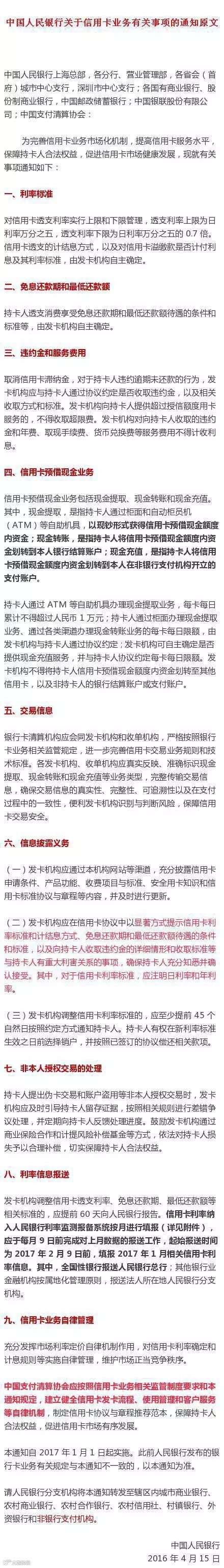今年4月15日,央行下发《关于信用卡业务有关事项的通知》,《通知》要求各商业银行2017年1月1日起取消信用卡滞纳金,而且信用卡预借现金还可转到本人结算账户内。虽然“大限”还未到,近日已有多家银行发布公告,开始提前落实新政,纷纷取消信用卡滞纳金。