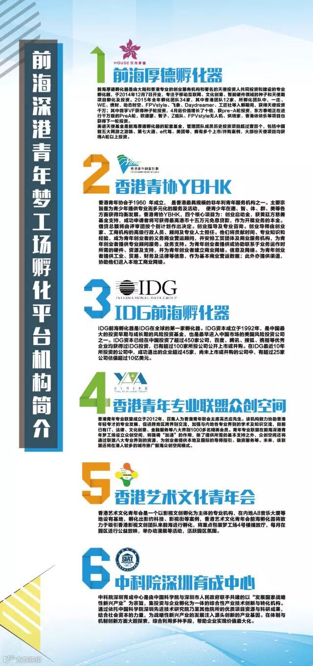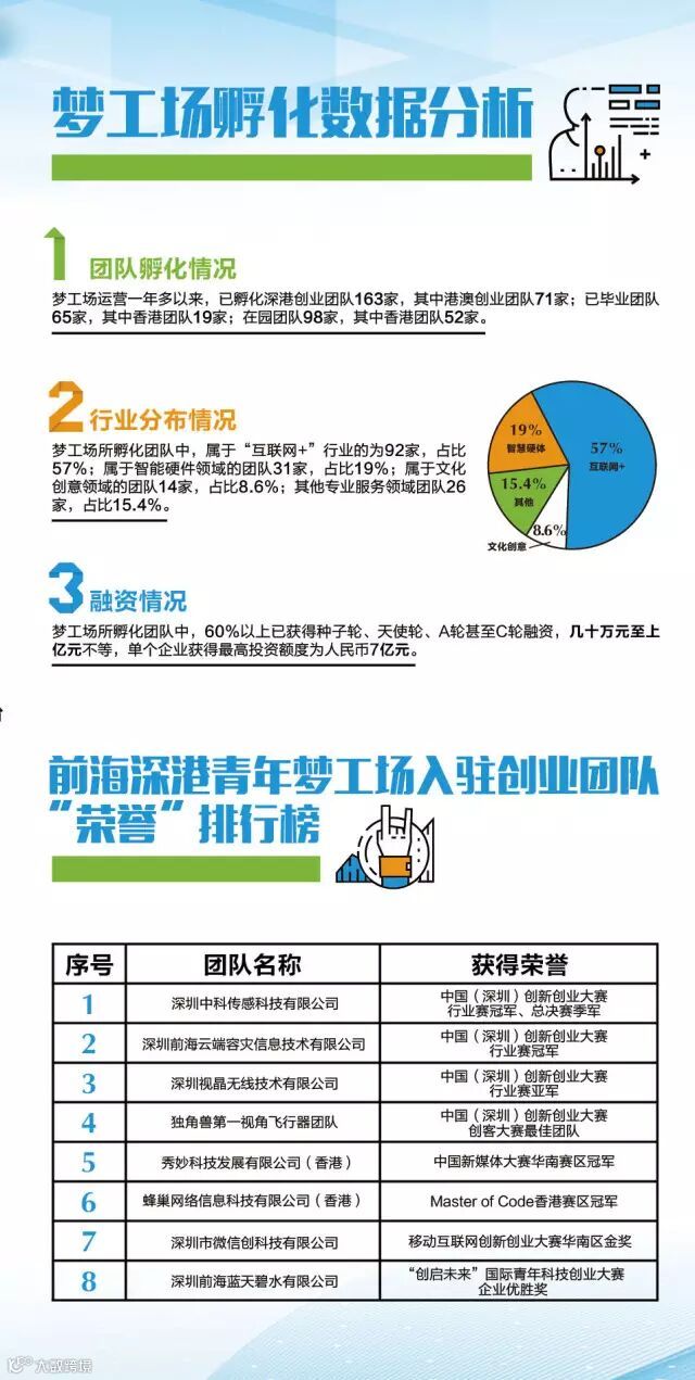 按照梦工场“创新型国际创客小区”的理念及“公益项目市场化运作”的思路,前海首创了“以梦工场为主导、合作机构为主体”的协同创业服务模式,梦工场采用市场化手段,引进了12家深港国际孵化器,打造深港最具活力的创新创业生态圈。值此双创周之际,前海管理局杜鹏局长、深圳市青年联合会主席刘广阳、香港青年协会总干事王䓪鸣博士将出席前海深港创投生态圈发布仪式并向入驻梦工场12家孵化器负责人颁发“前海深港创投生态圈”徽章。