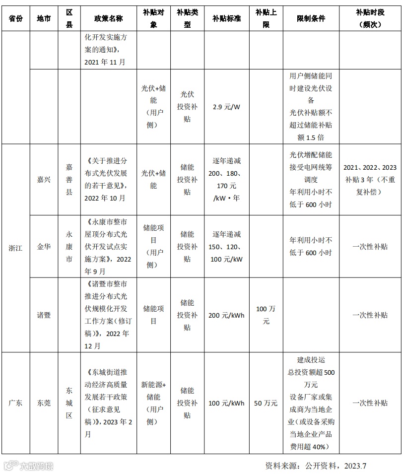 为保障新能源高效利用消纳,提升新能源并网友好性和容量支撑能力是电源侧储能的主要作用。除国家层面外,各省也在加快光储融合工作。目前,全国已有超过二十个省份发布了鼓励或强制新能源配置储能的政策,以江苏、浙江、安徽、广东等区域为代表,结合光伏产业发展,出台了多项“光伏+储能”的补贴政策,其中,“分布式光伏+储能”项目及“光伏场站+储能”项目均在激励范围内。