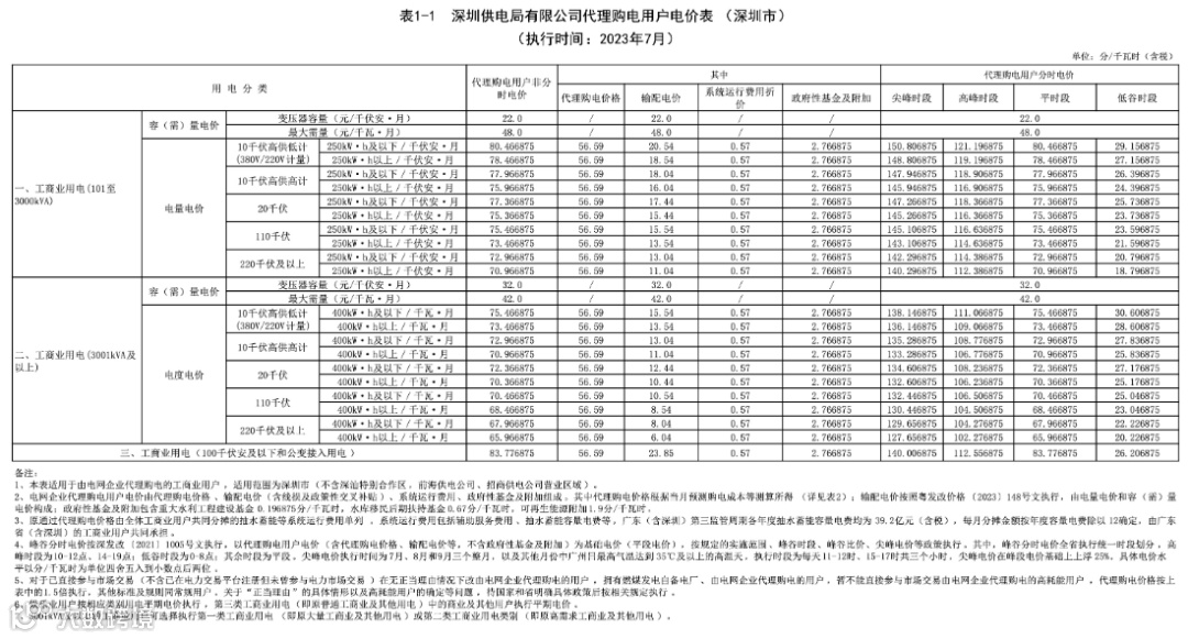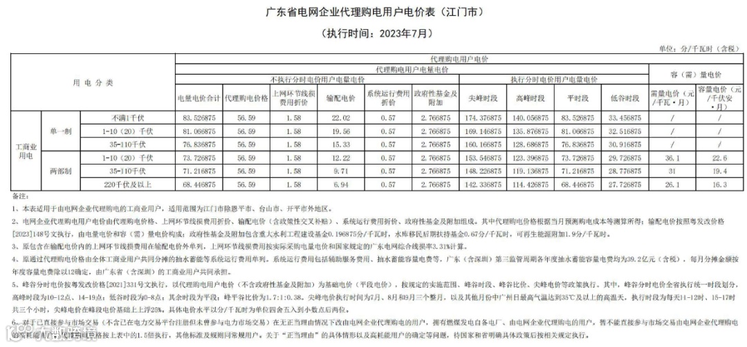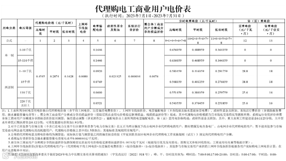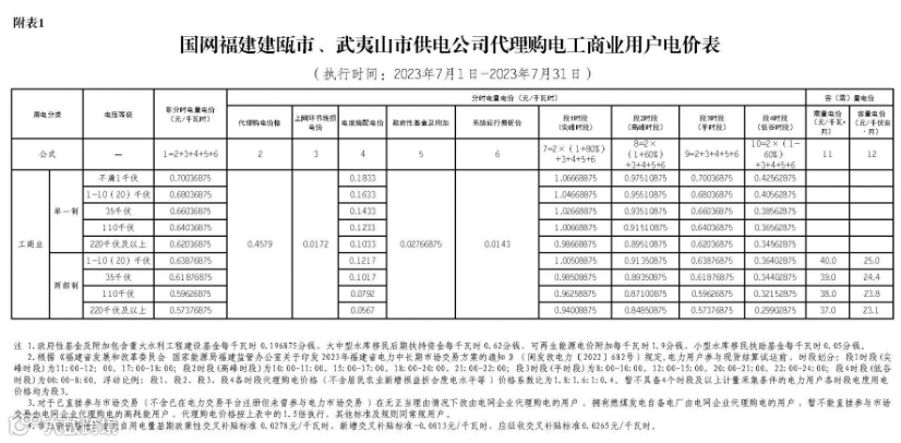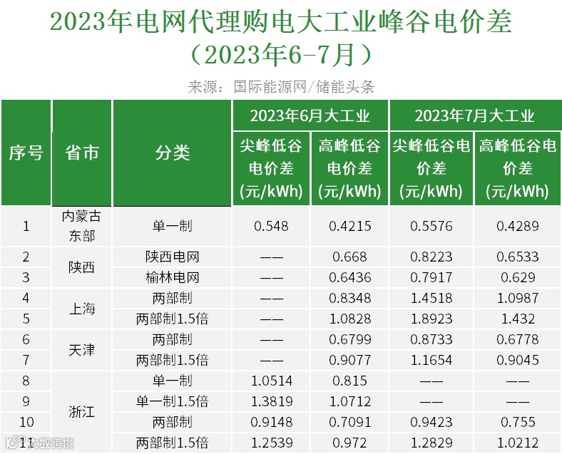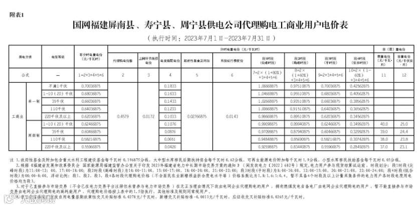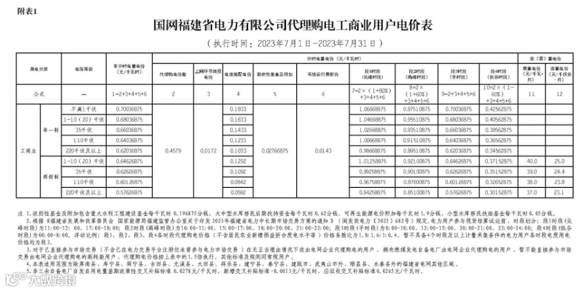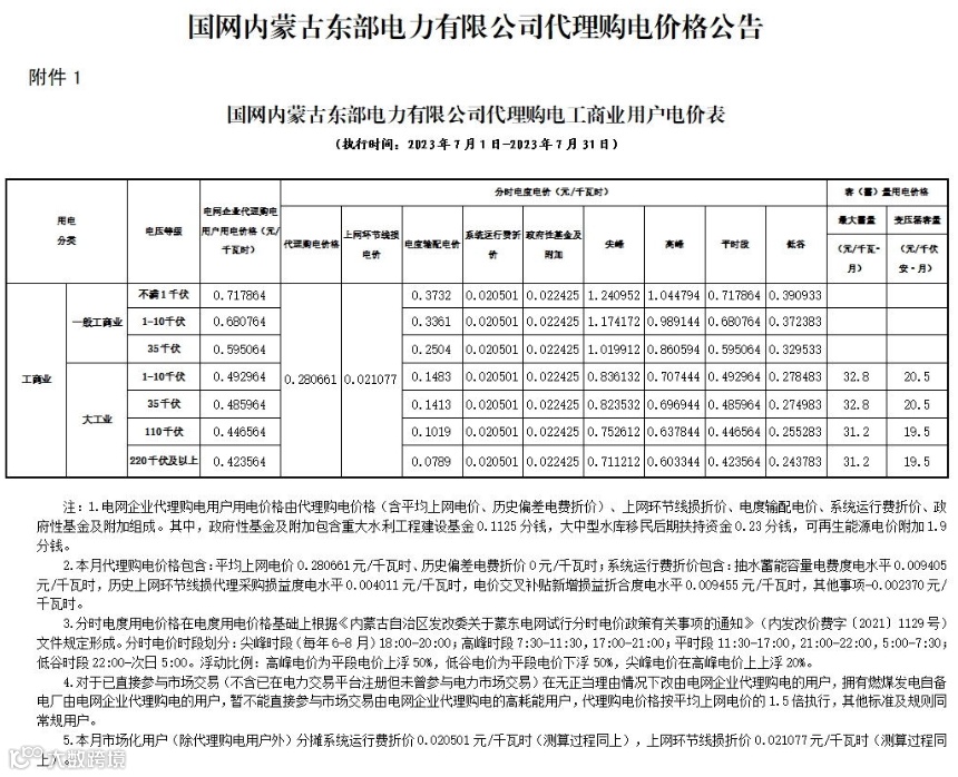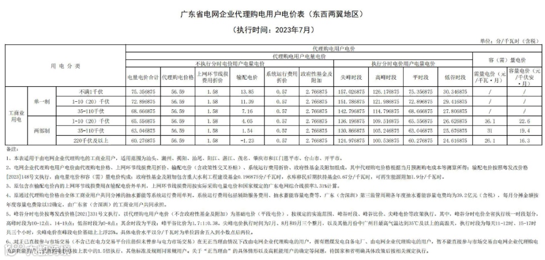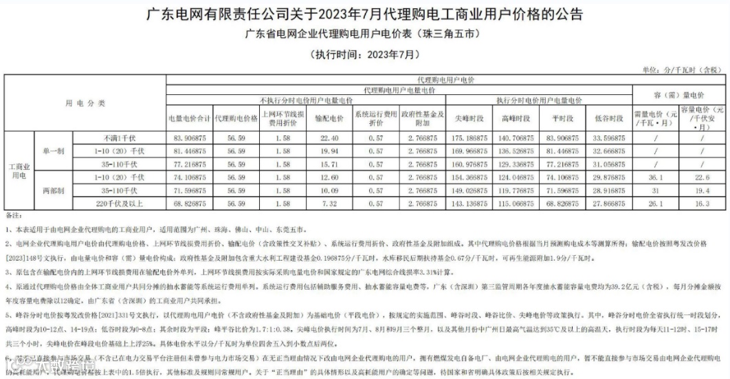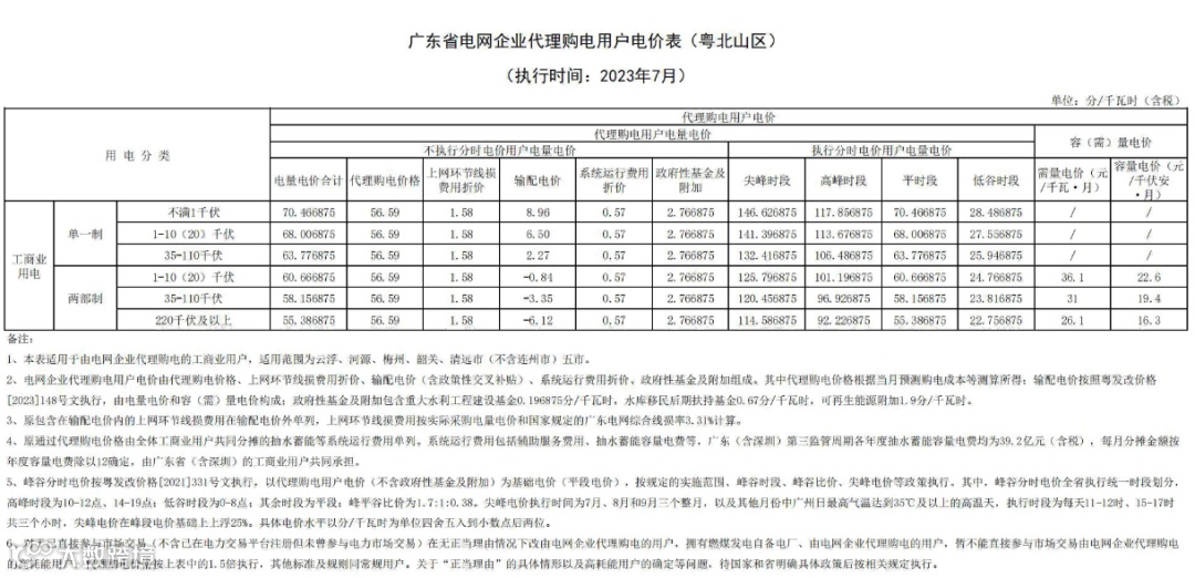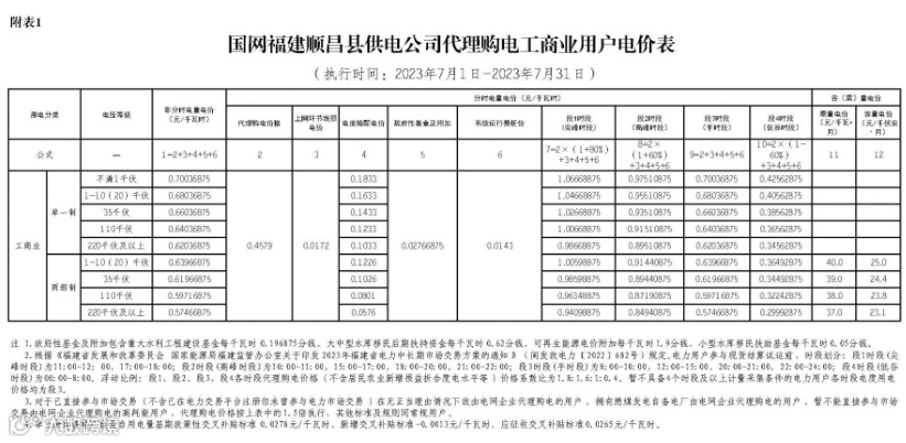2023年7月代理购电电价表已发布。进入炎热夏季,不少区域将执行新的峰谷时段电价政策。各区域纷纷采用尖峰电价,峰谷价差明显增大。