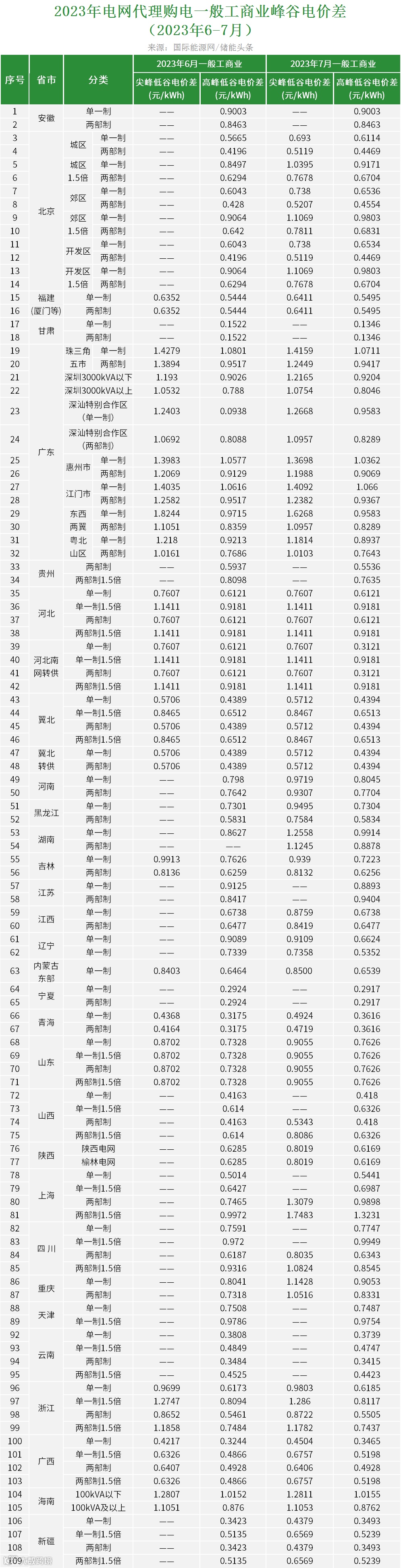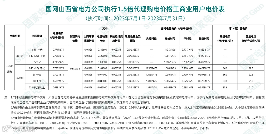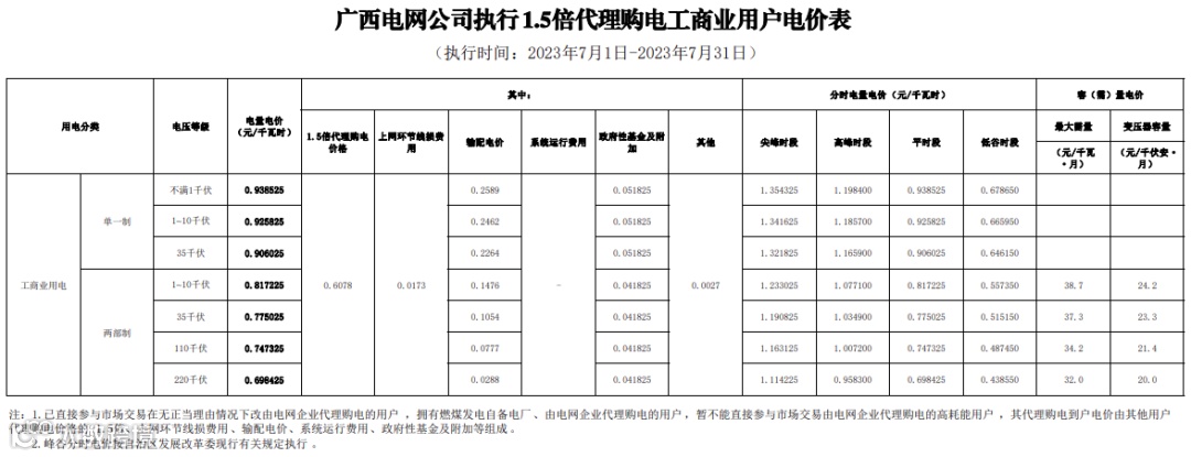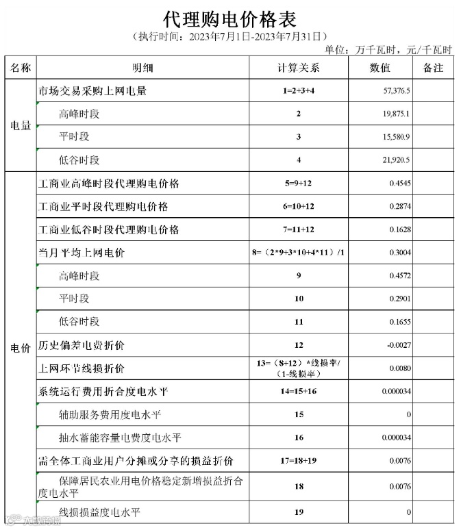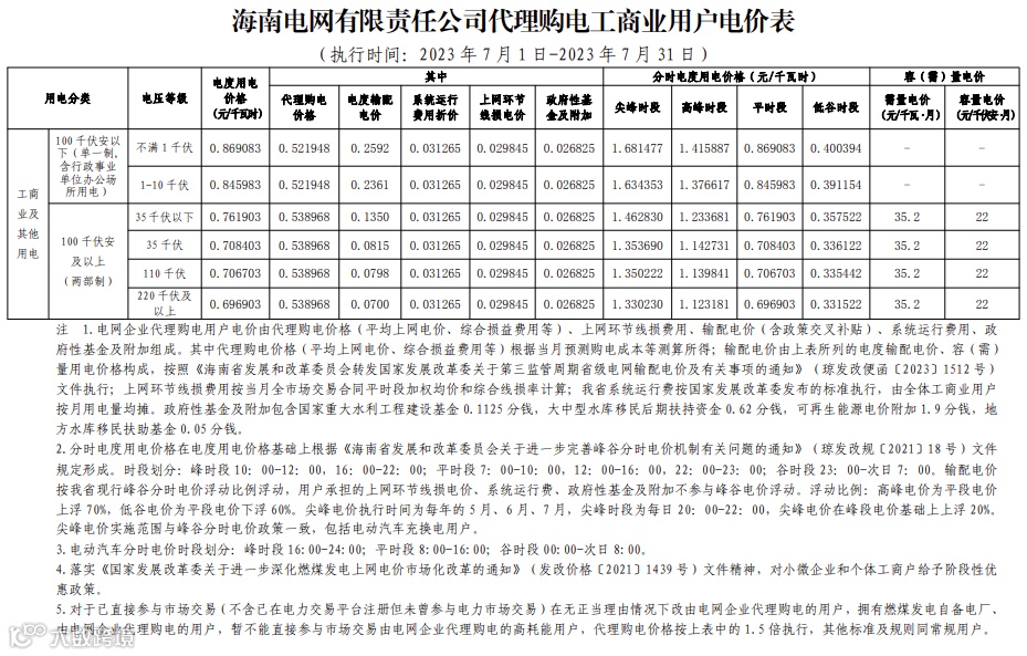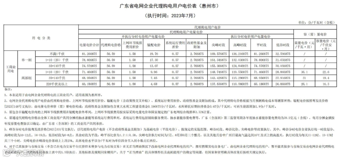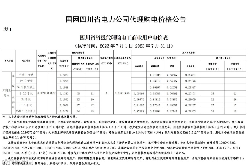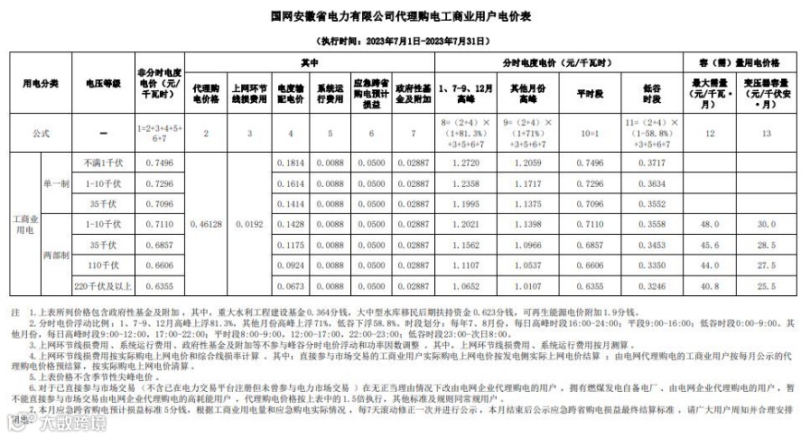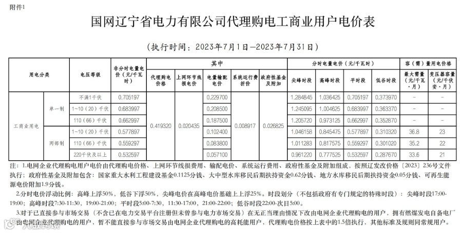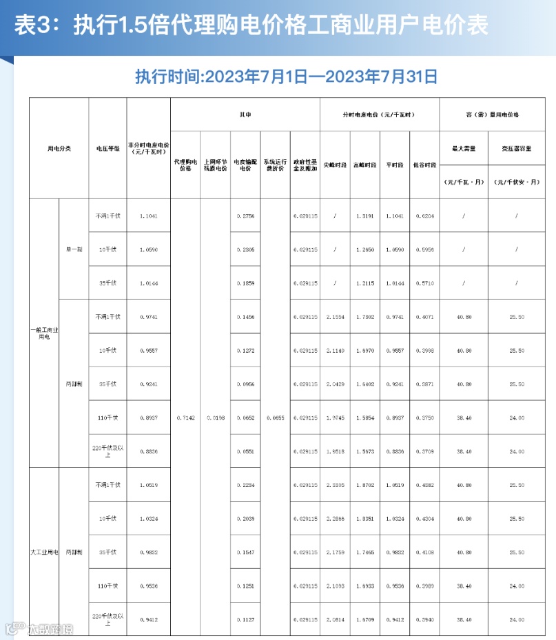 2023年7月代理购电电价表已发布。进入炎热夏季,不少区域将执行新的峰谷时段电价政策。各区域纷纷采用尖峰电价,峰谷价差明显增大。