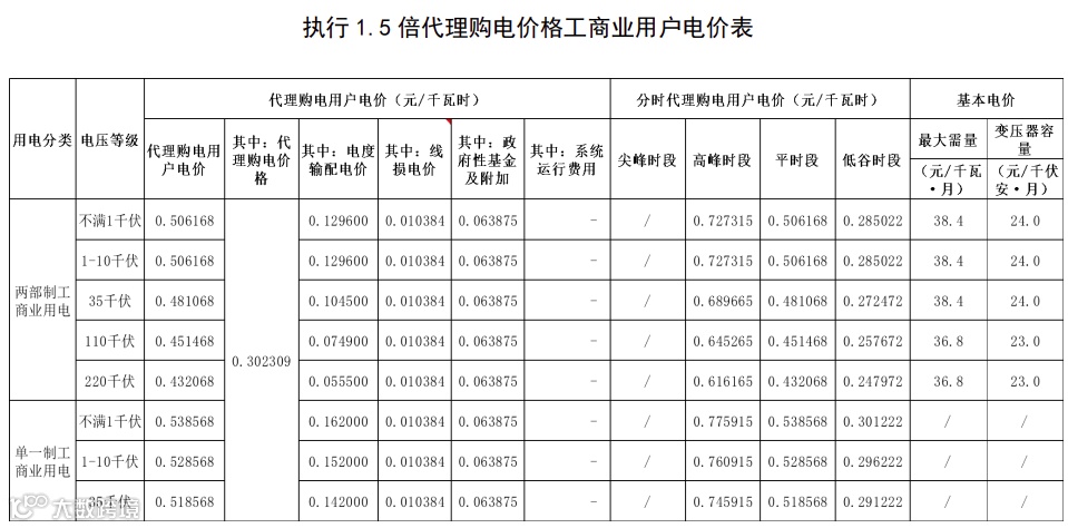 一般工商业电价方面,除甘肃、蒙东地区还未执行之外,全国各省都已执行两部制电价。