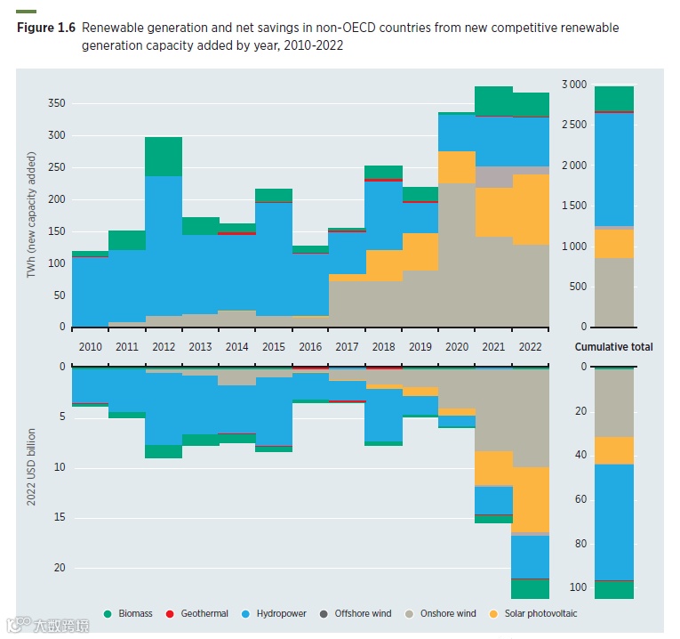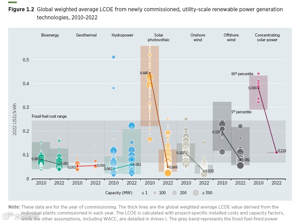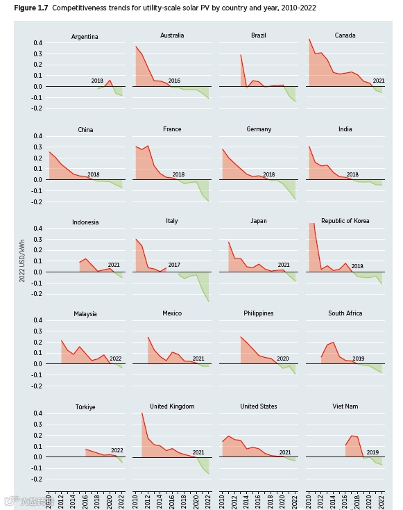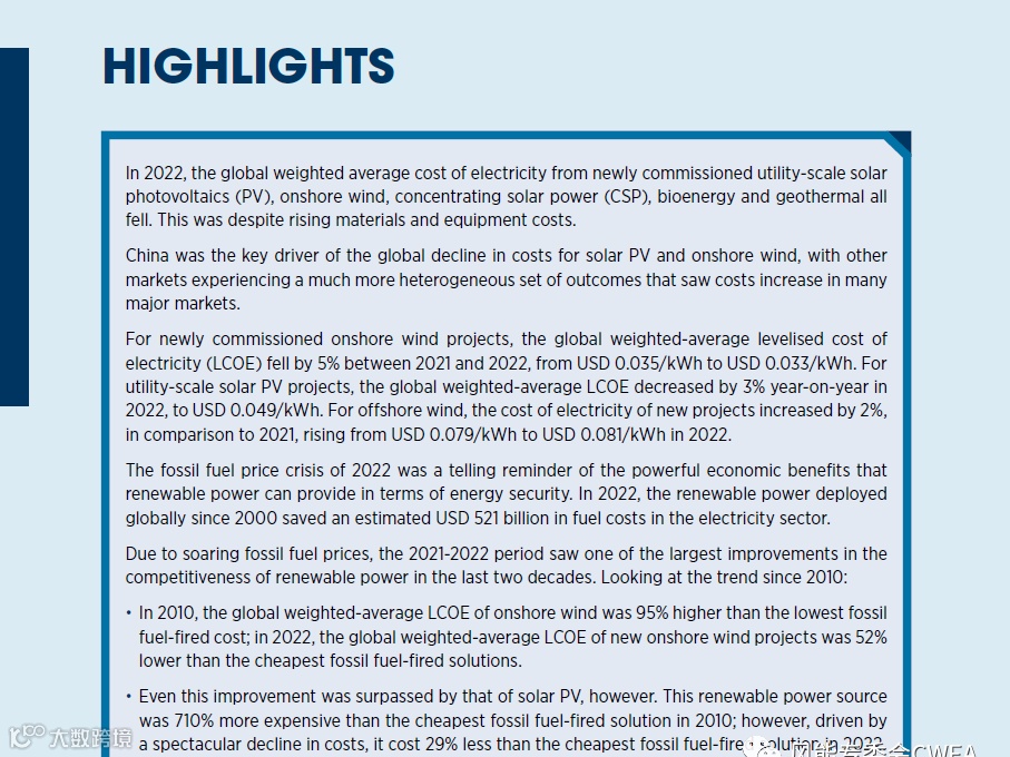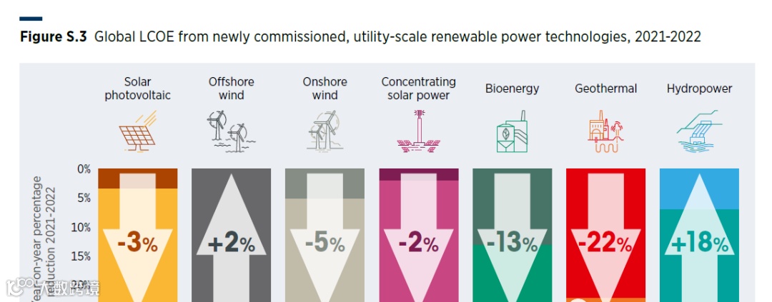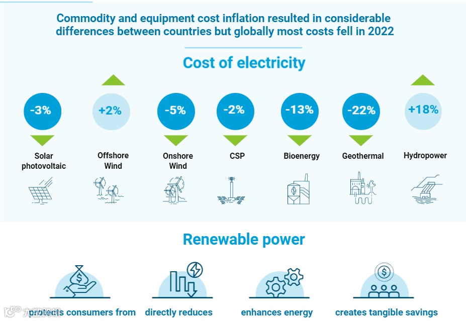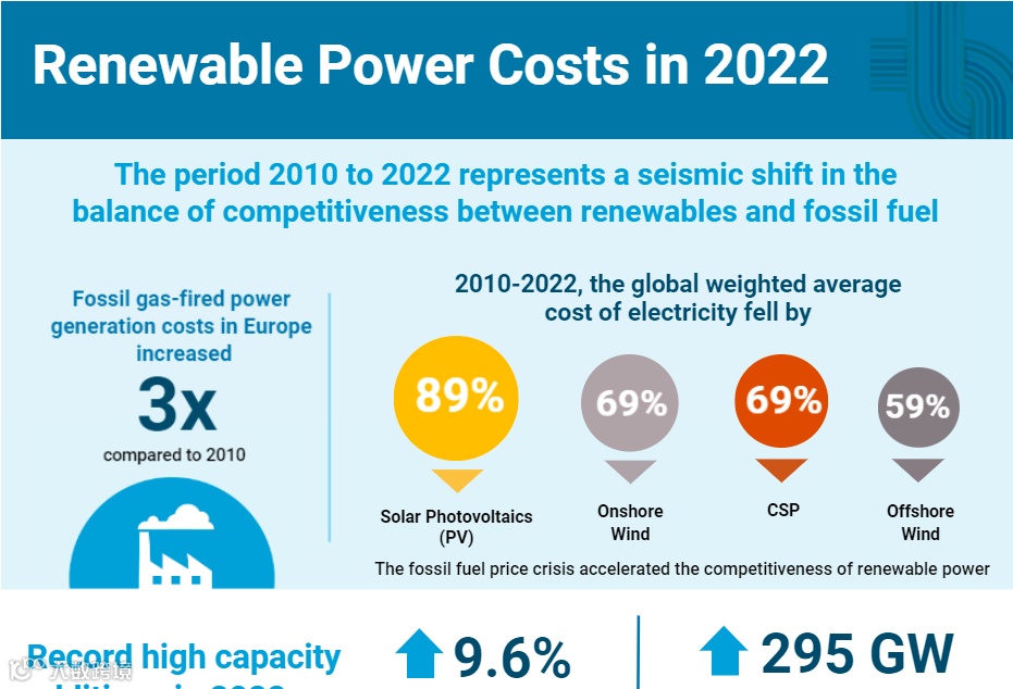“国际可再生能源署将2022年视为推广可再生能源的真正转折点,尽管在全球都出现了商品滞销和设备成本的波动(上涨),但其仍表现出前所未有的成本竞争力。而受历史性价格冲击影响最严重的地区,则展现出了非凡的韧性,这在很大程度上要归功于过去十年间太阳能和风能的大幅增长。”