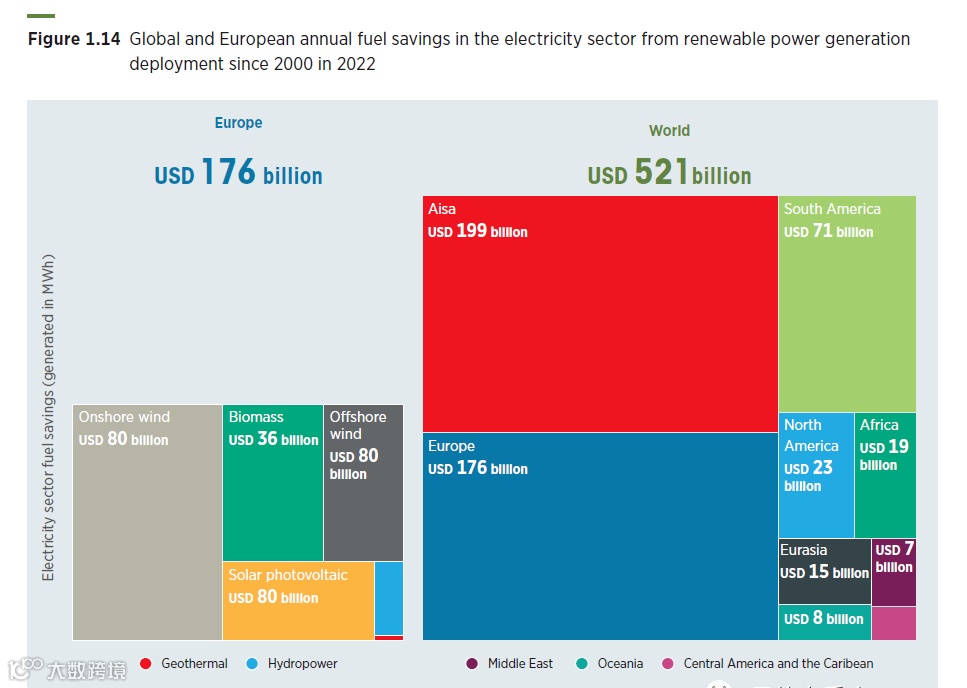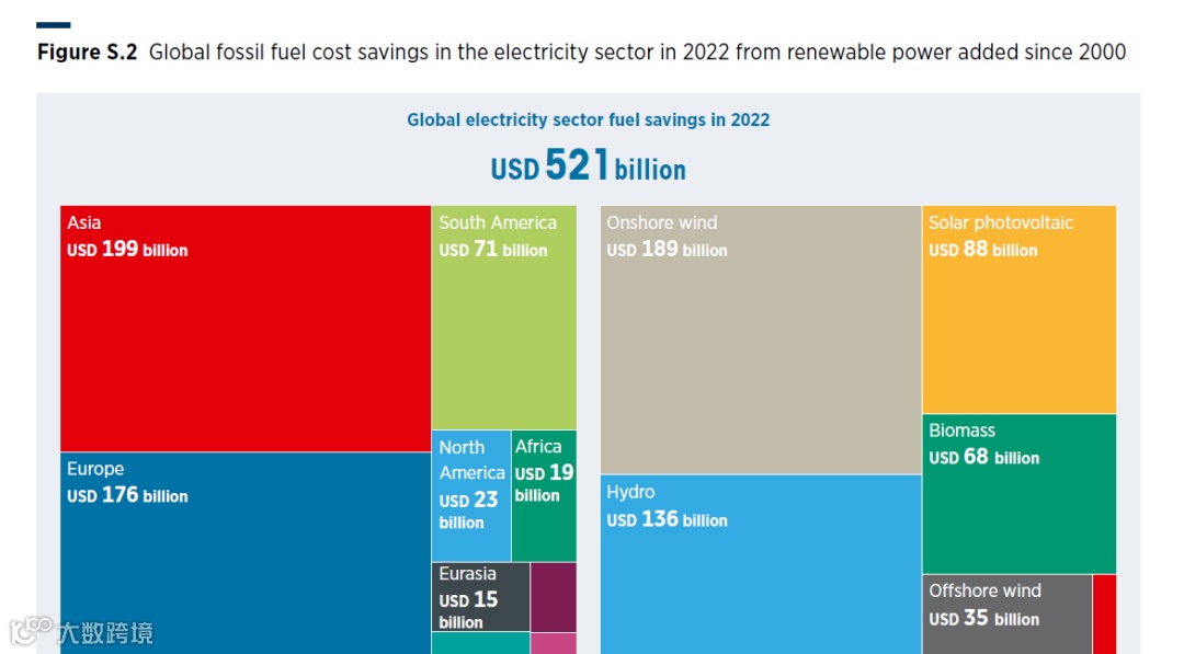 据国际可再生能源署(IRENA)最新报告,得益于可再生能源,去年全球电力行业共节约了5200亿美元的燃料成本。