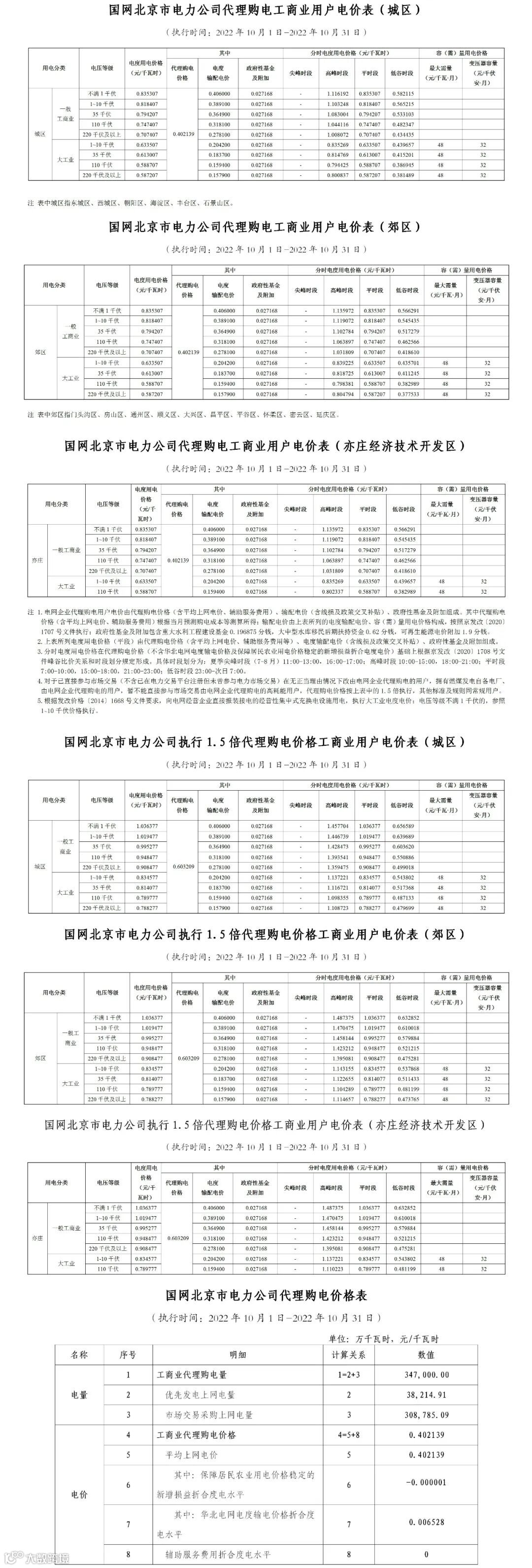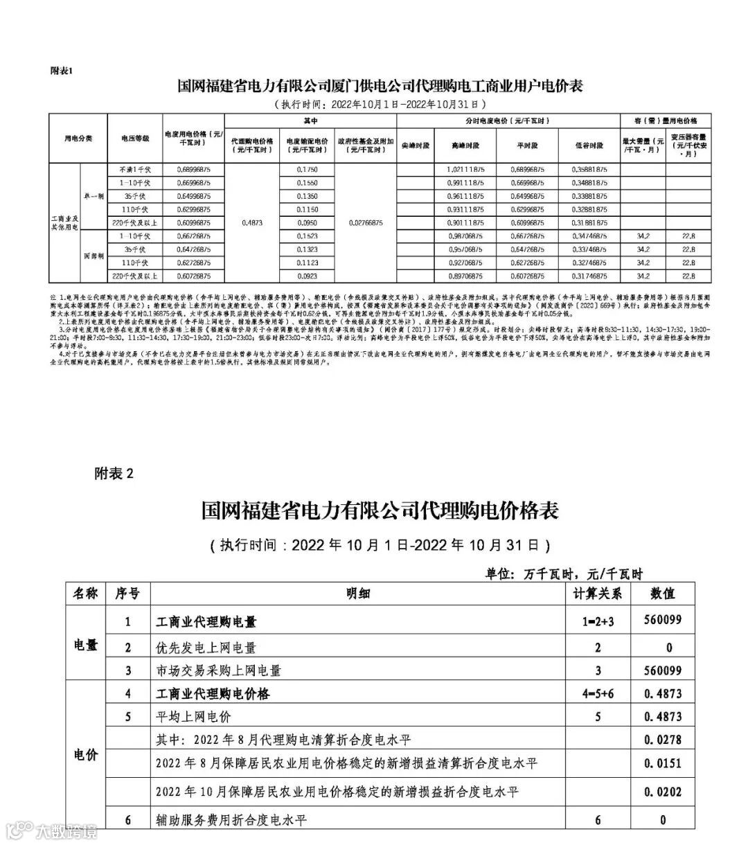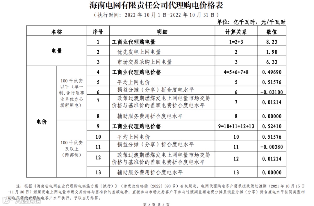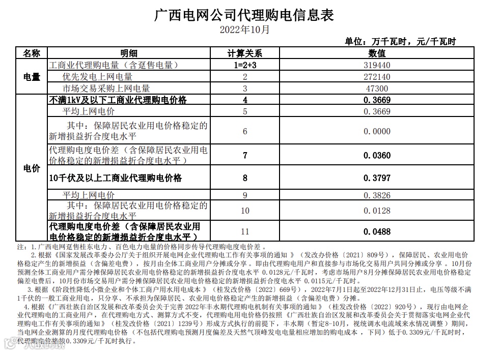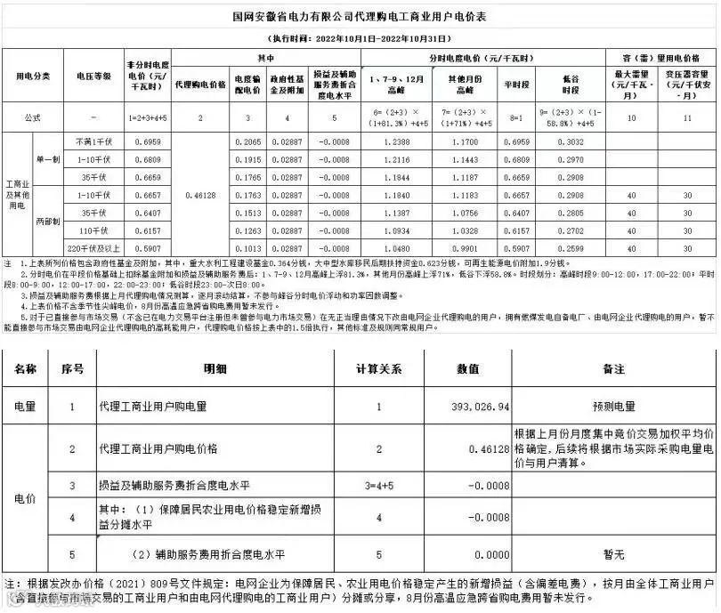 以下附全国各省10月代理购电电价详情: