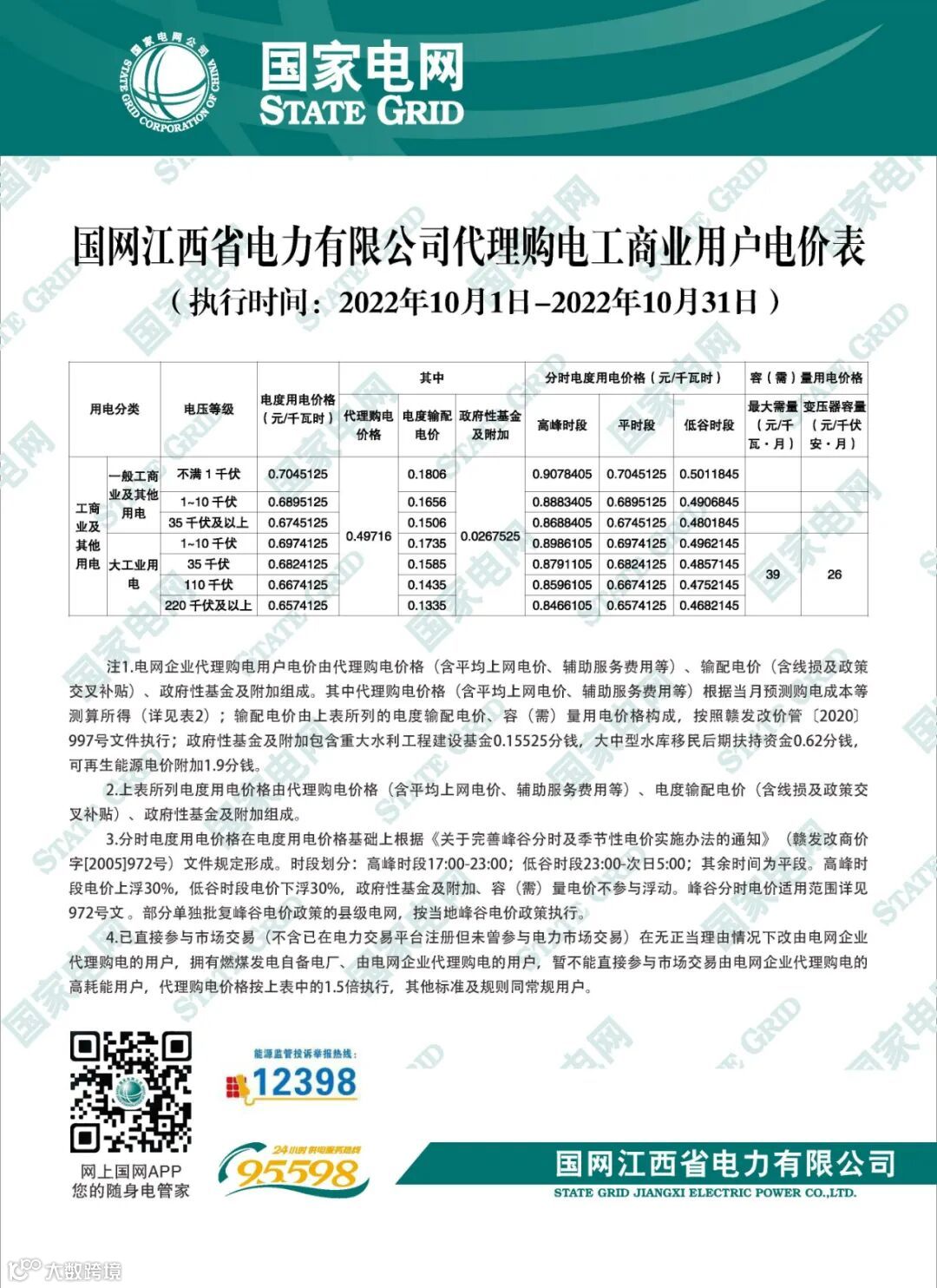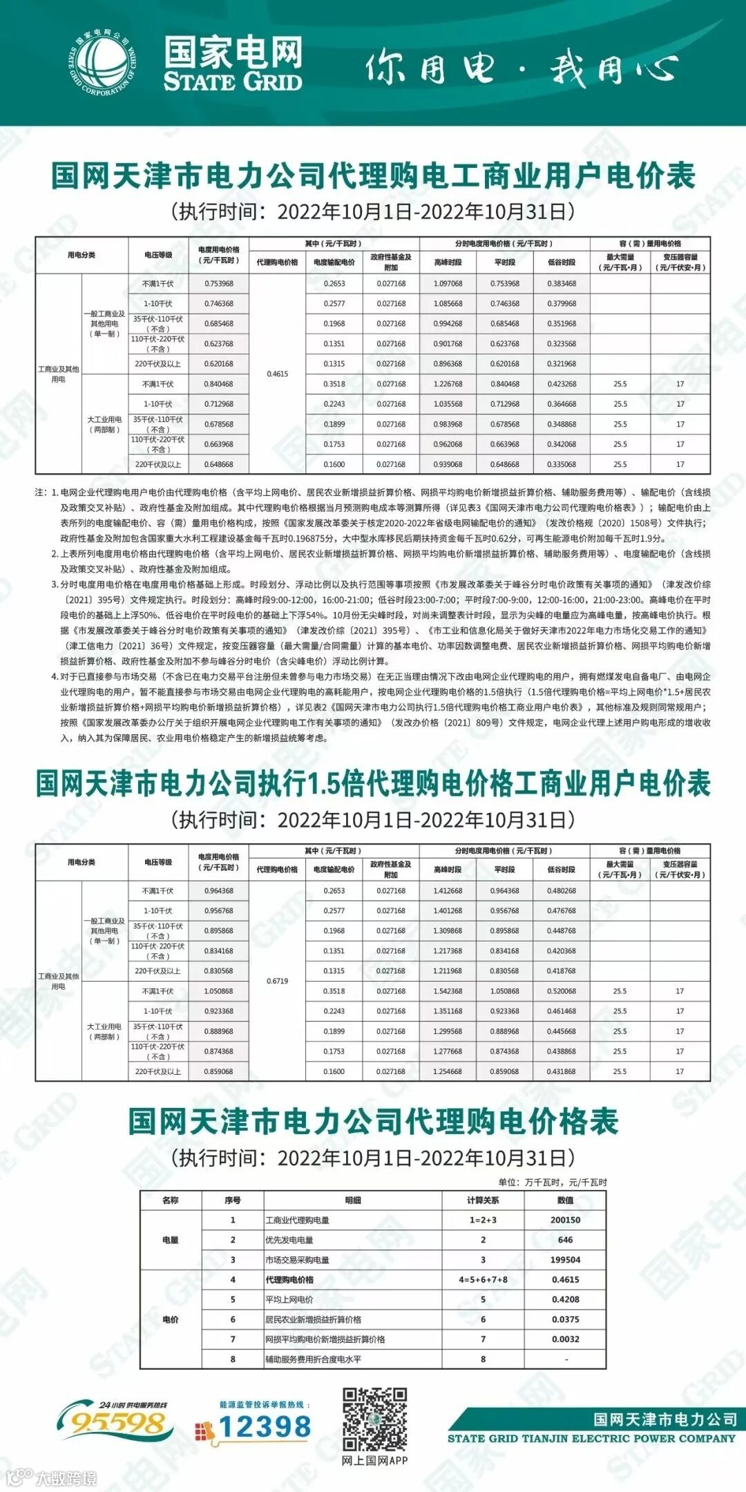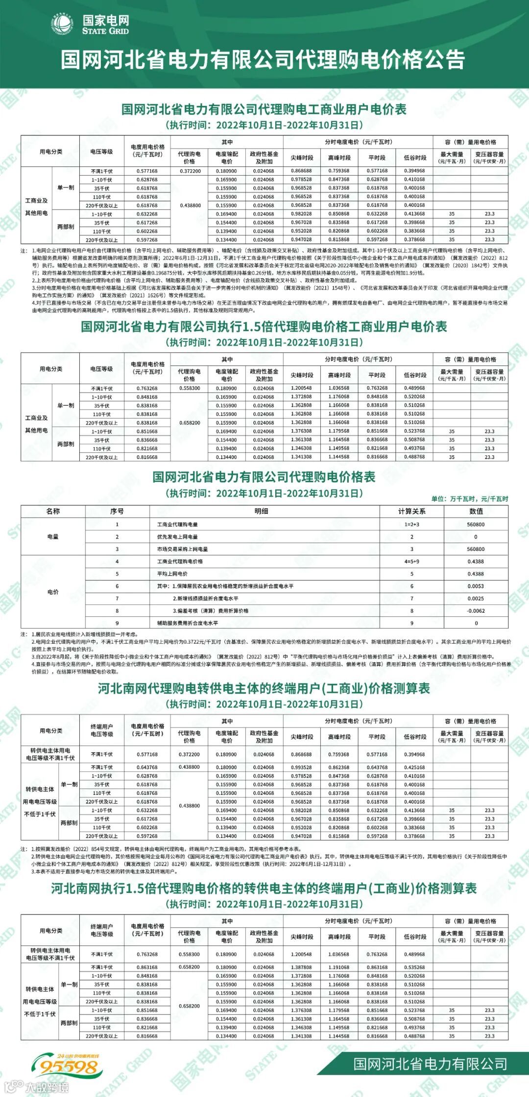 以下附全国各省10月代理购电电价详情: