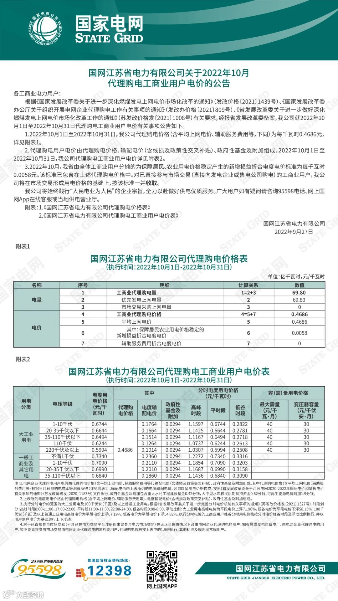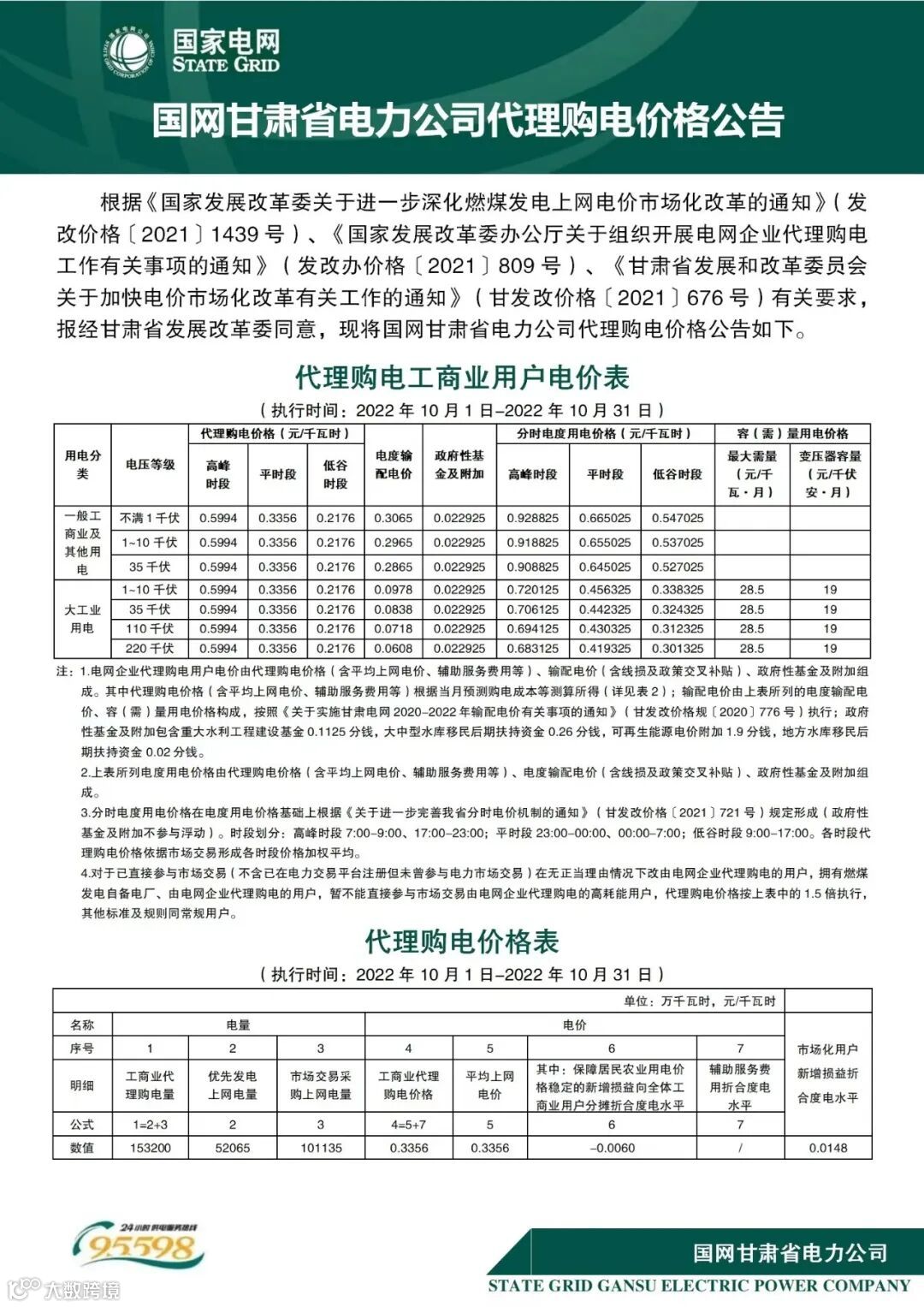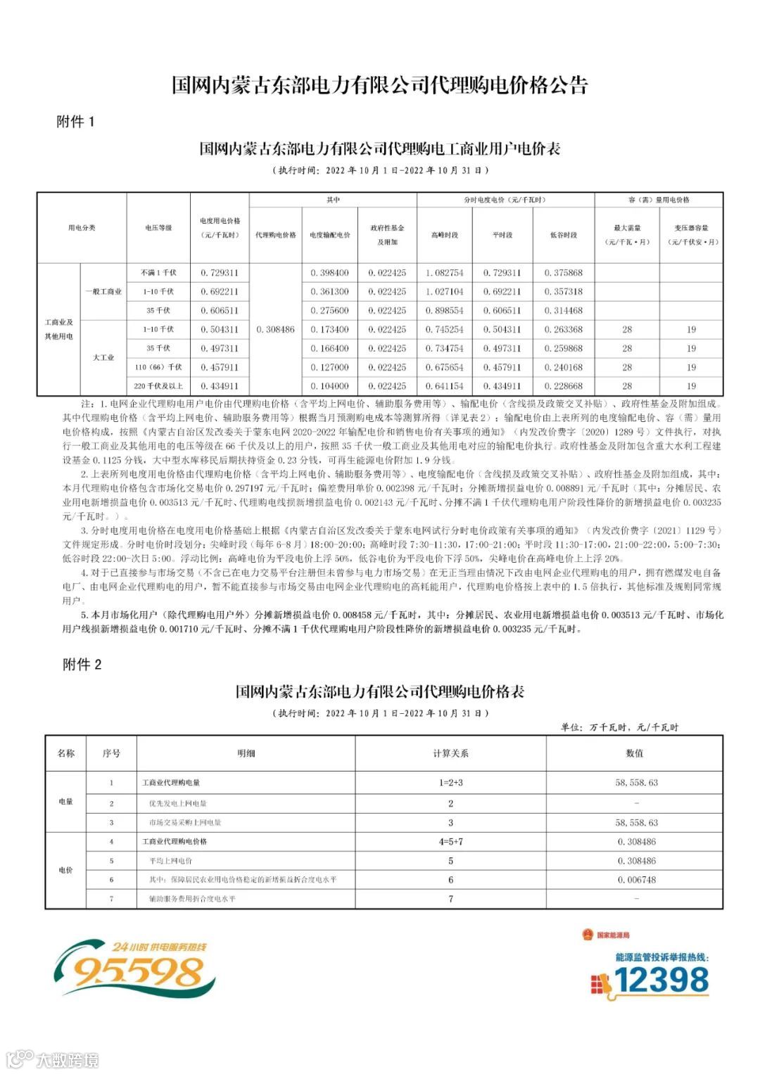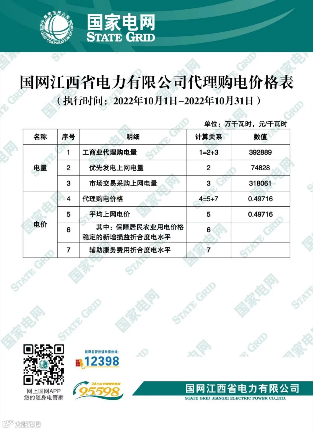 以下附全国各省10月代理购电电价详情: