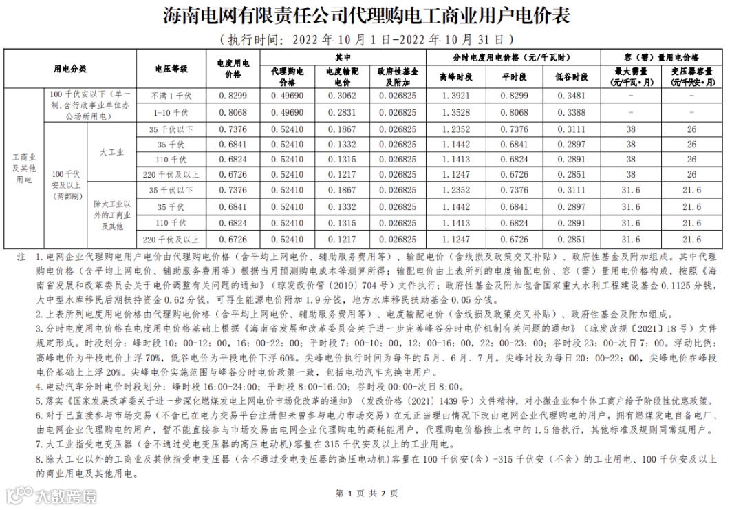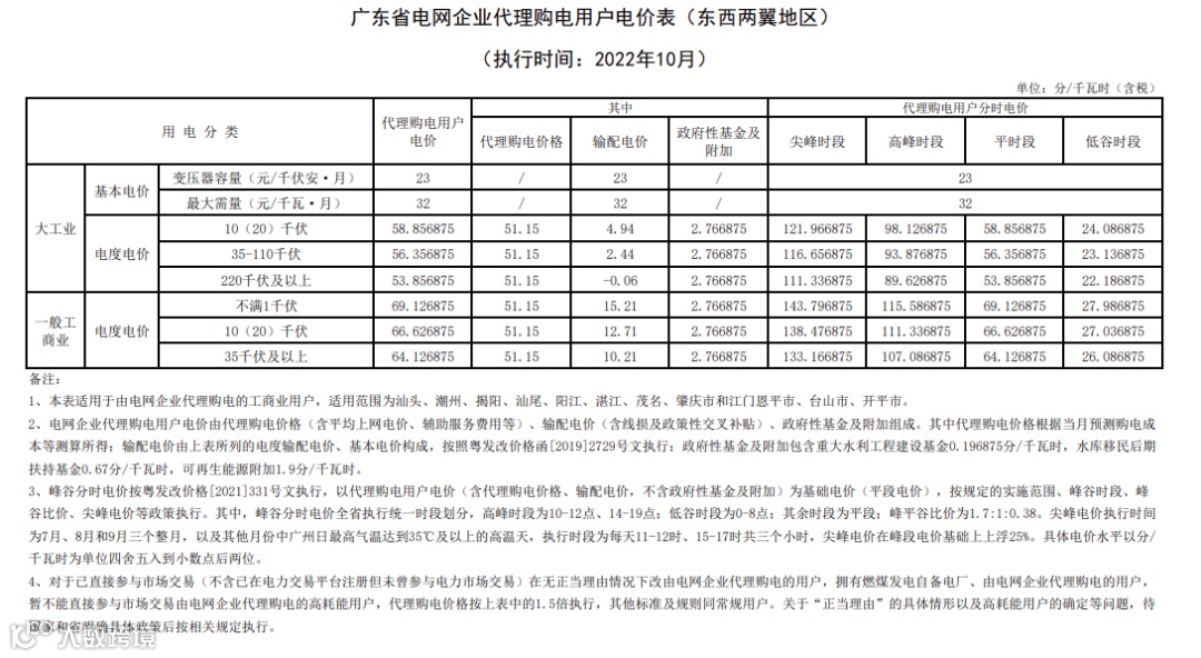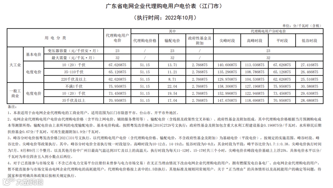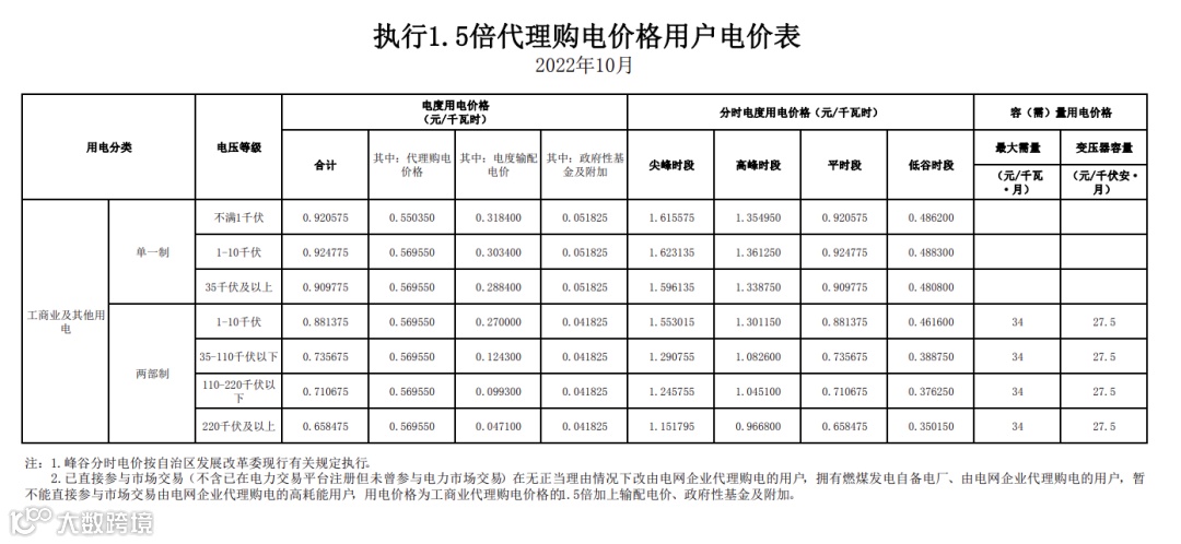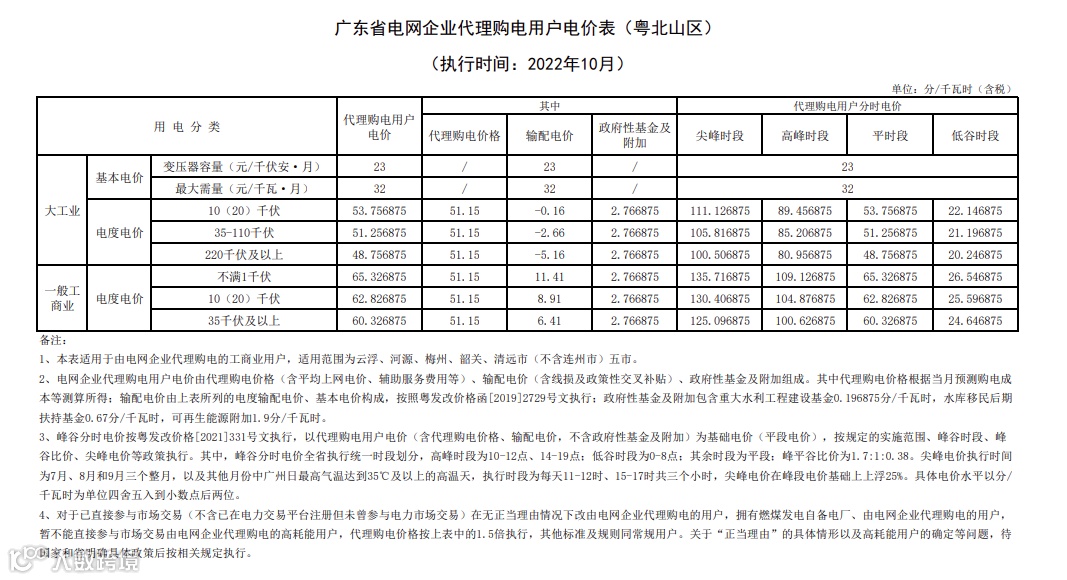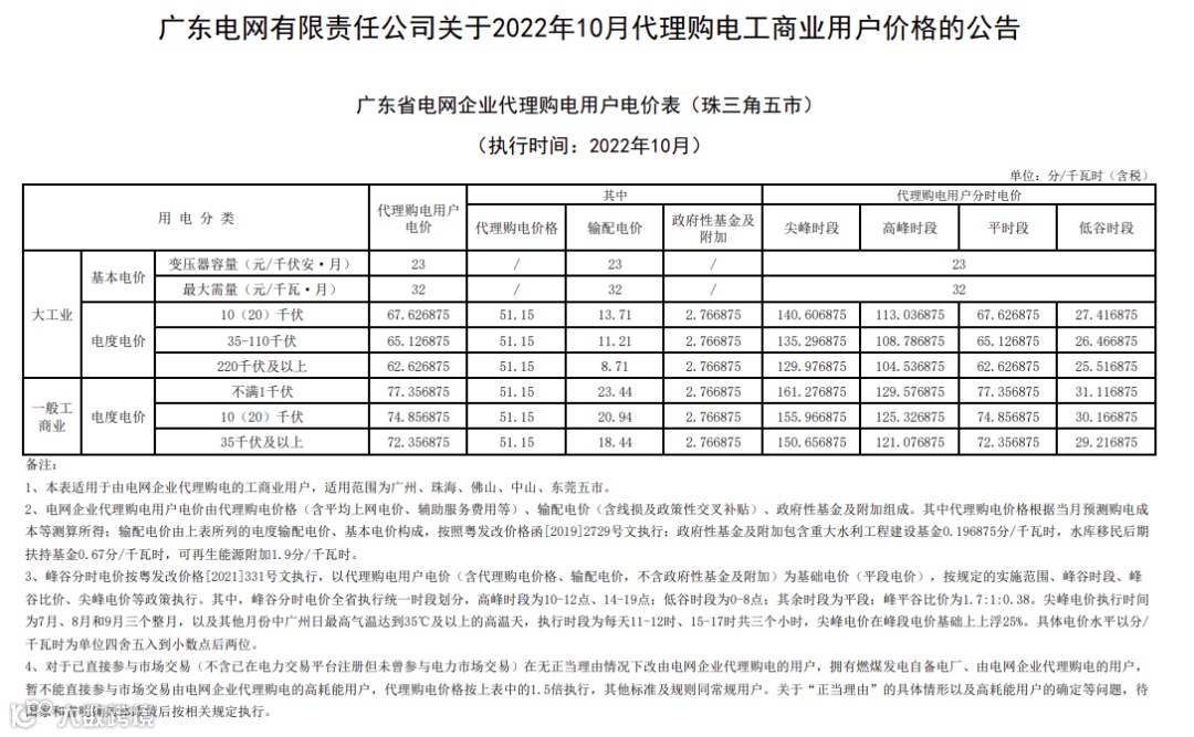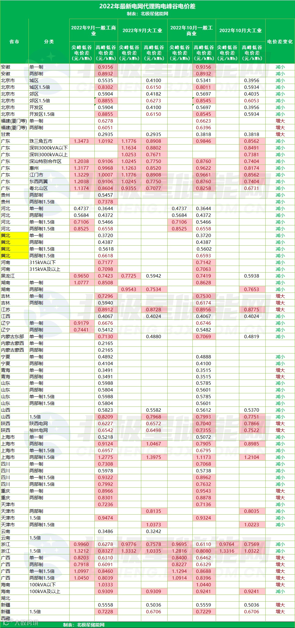 以下为各省峰谷电价差汇总,以及各省电网代理购电价格详表。
