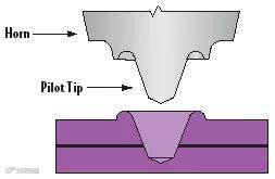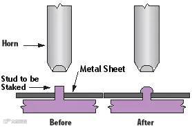 铆焊法指的是振动的焊头压制物品的突起处使其热熔为铆钉状,从而使两物体机械铆合