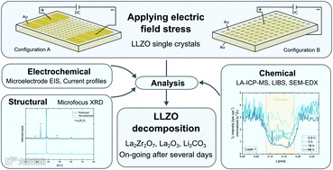 1)利用环境空气中的现场应力实验和随后的电化学、化学和结构分析,研究了LLZO单晶的电化学稳定性行为。