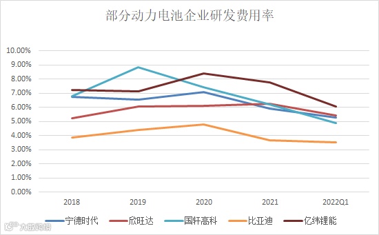 从近年的财务数据可以看到,亿纬锂能的研发费用占比始终处于同行业的前列。