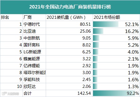 就这样,后来亿纬锂能又相继收获现代起亚、小鹏汽车、宝马和捷豹路虎等国内外大客户。2021年,亿纬锂能装机量同比增长188.46%,首次迈入全球前十。