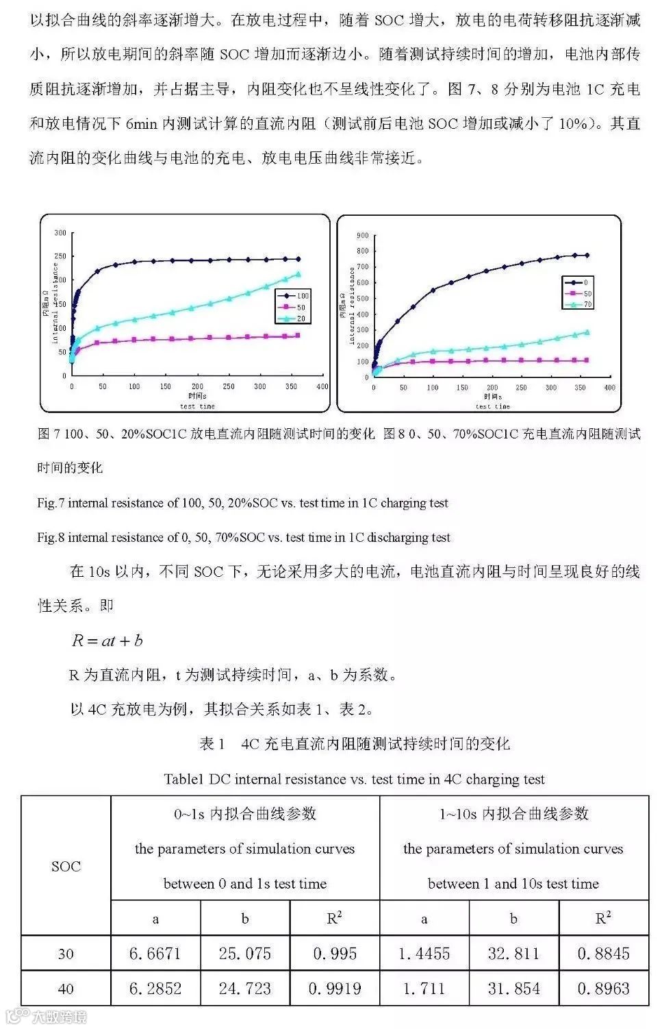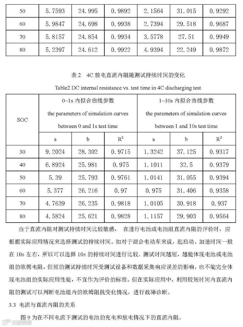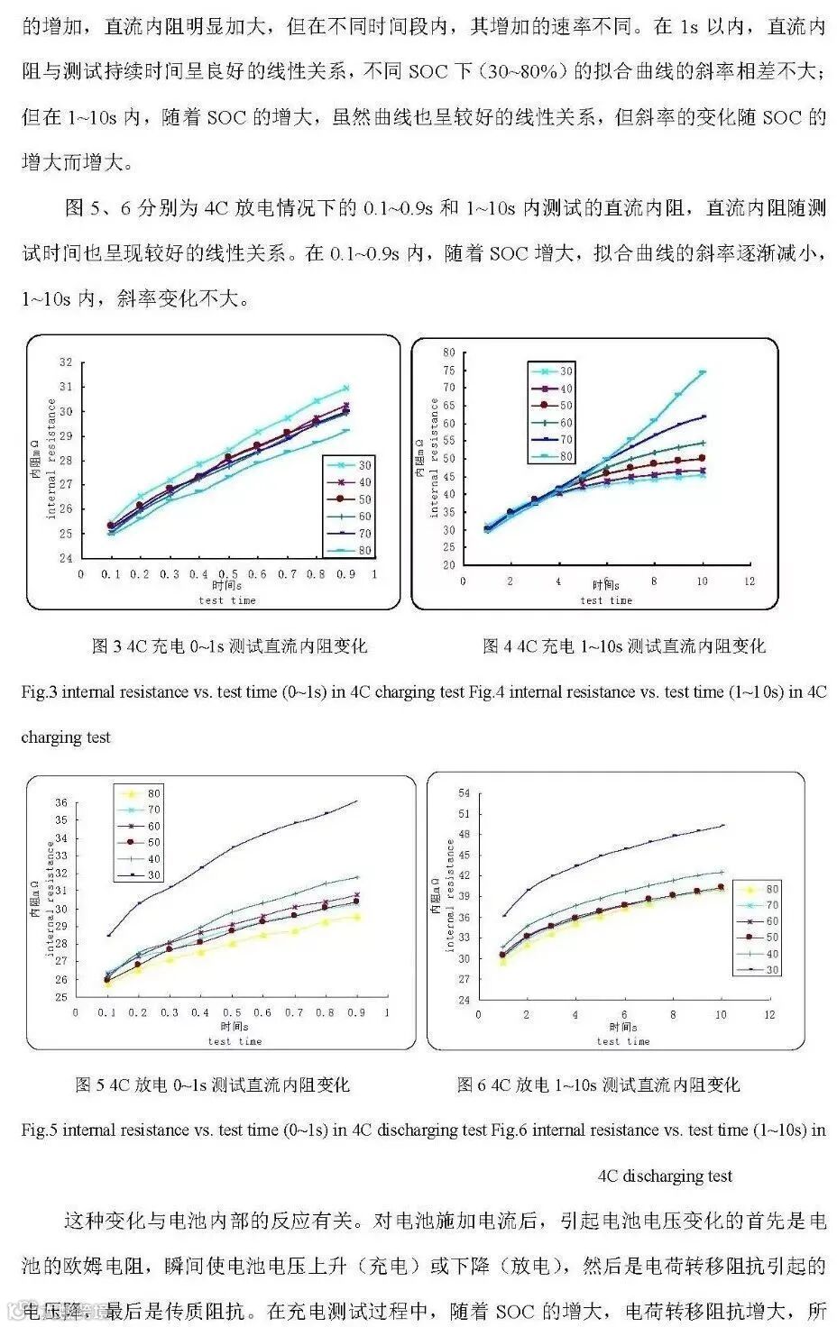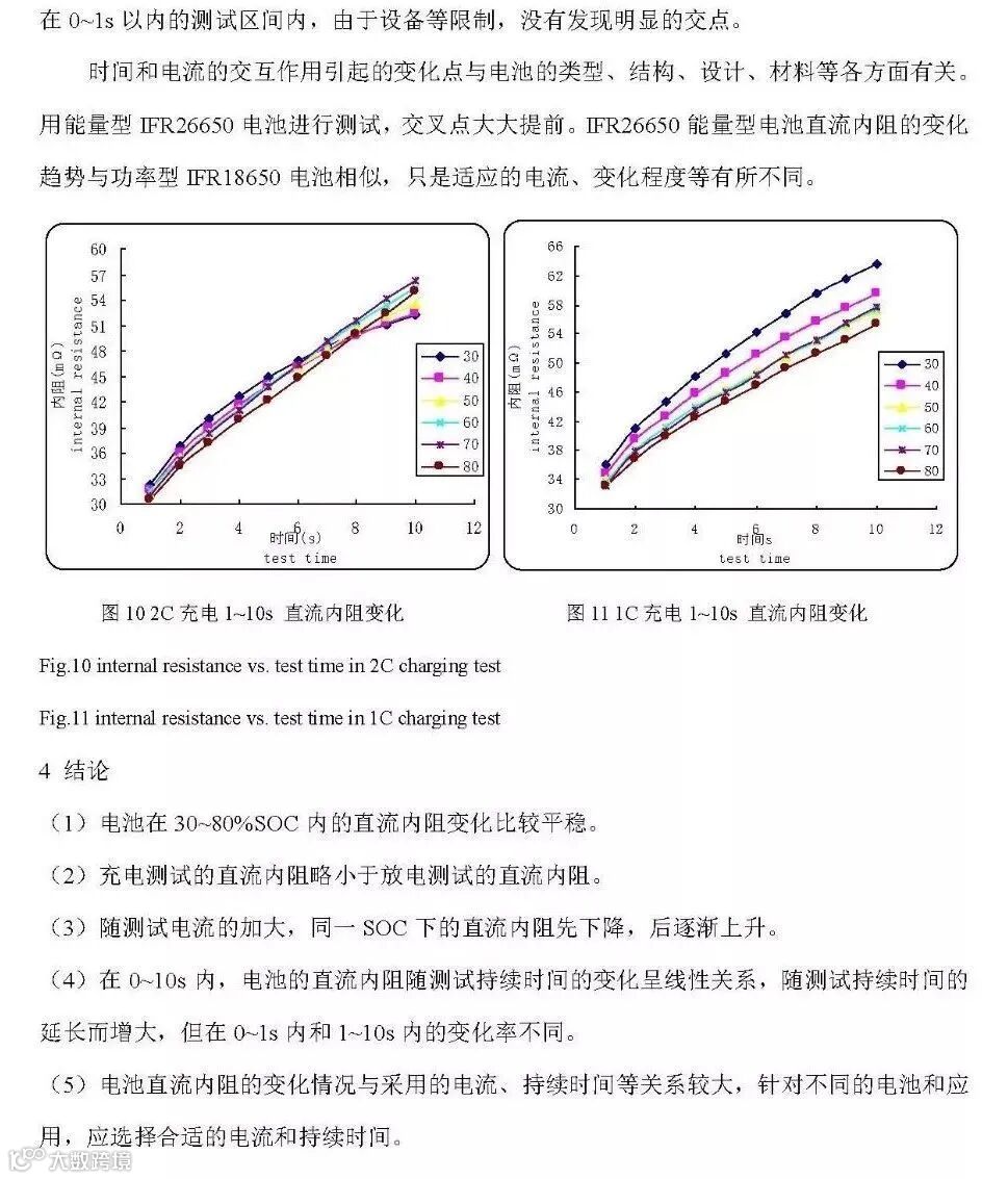 但对于大型电池组应用,如电动车用电源系统来说,由于测试设备等方面的限制,不能或不方便来直接进行交流内阻的测试,一般通过直流内阻来评价电池组的特性。在实际应用中,也多用直流内阻来评价电池的健康度,进行寿命预测,以及进行系统SOC、输出/输入能力等的估计。在生产中,可以用来检测故障电池如微短路等现象。