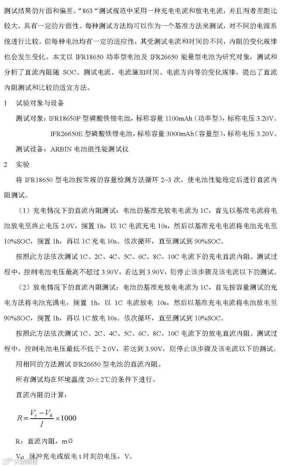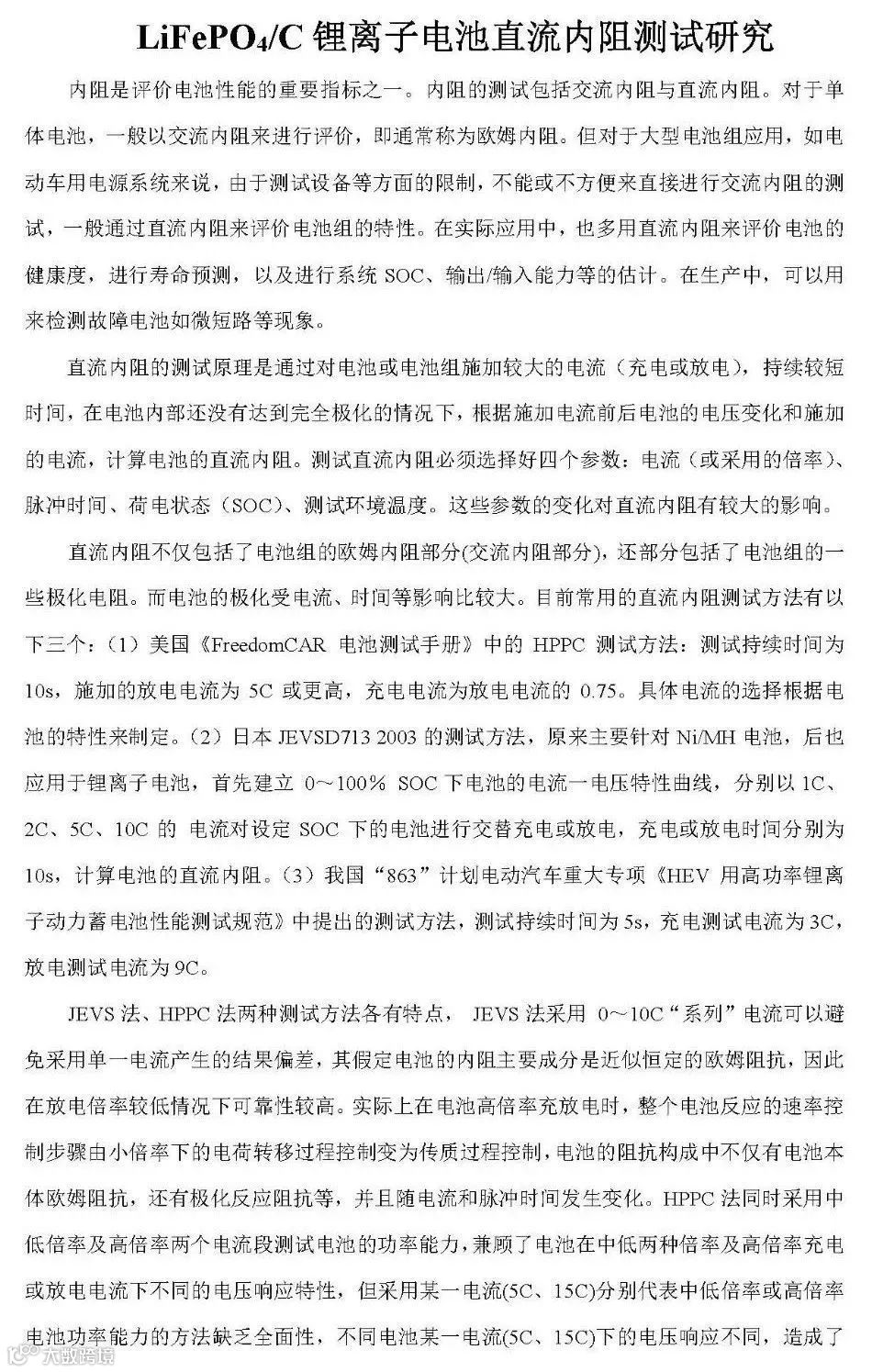 内阻是评价锂电池性能的重要指标之一。内阻的测试包括交流内阻与直流内阻。对于单体电池,一般以交流内阻来进行评价,即通常称为欧姆内阻。