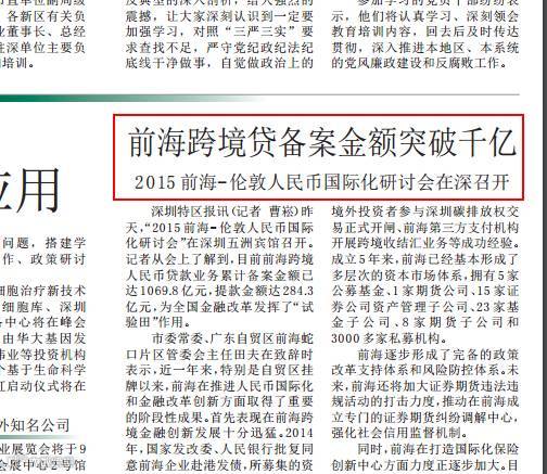 在众多金融创新中,跨境人民币贷款无疑是前海迈出的最重要的一步。2013年1月,跨境人民币贷款业务在前海率先破冰,拓宽了境外人民币资金回流渠道,成为人民币国际化的标志性事件。截至目前,前海跨境贷款累计备案金额超过千亿元,提款金额超过356亿元,并较好地发挥了示范作用。