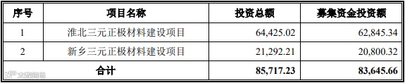 本次A股IPO,天力锂能拟加码产能扩建,公开发行不超过3050万股新股,募资8.36亿元用于淮北三元正极材料建设项目、新乡三元正极材料建设项目。