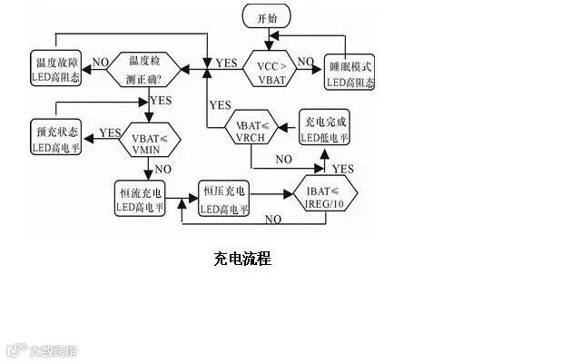 阶段1:涓流充电——涓流充电用来先对完全放电的电池单元进行预充(恢复性充电)。在电池电压低于3V左右时采用涓流充电,涓流充电电流是恒流充电电流的十分之一即0.1c(以恒定充电电流为1A举例,则涓流充电电流为100mA),
