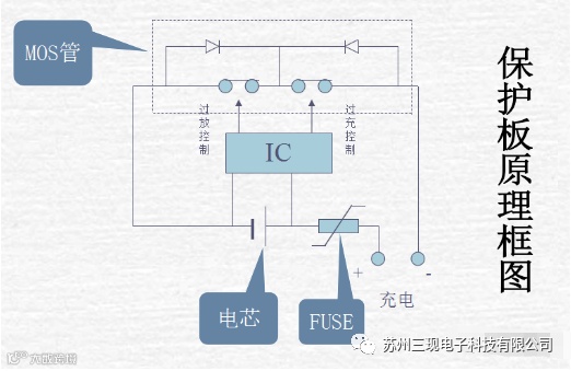 保护板通常包括控制IC、MOS开关及辅助器件NTC、ID、存储器等。其中控制IC,在一切正常的情况下控制MOS开关导通,使电芯与外电路沟通,而当电芯电压或回路电流超过规定值时,它立刻控制MOS开关关断,保护电芯的安全。
