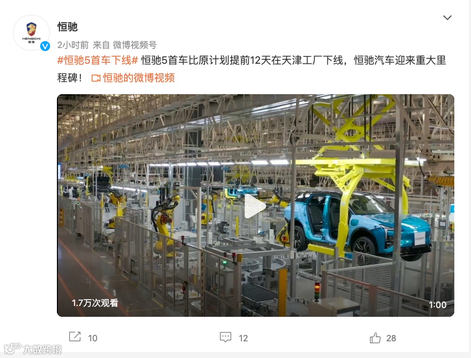 不过,也有消息人士表示,恒驰5还处于PT0(小批量试制)阶段,现在只是总装下线,预计正式量产还要等到今年8月。