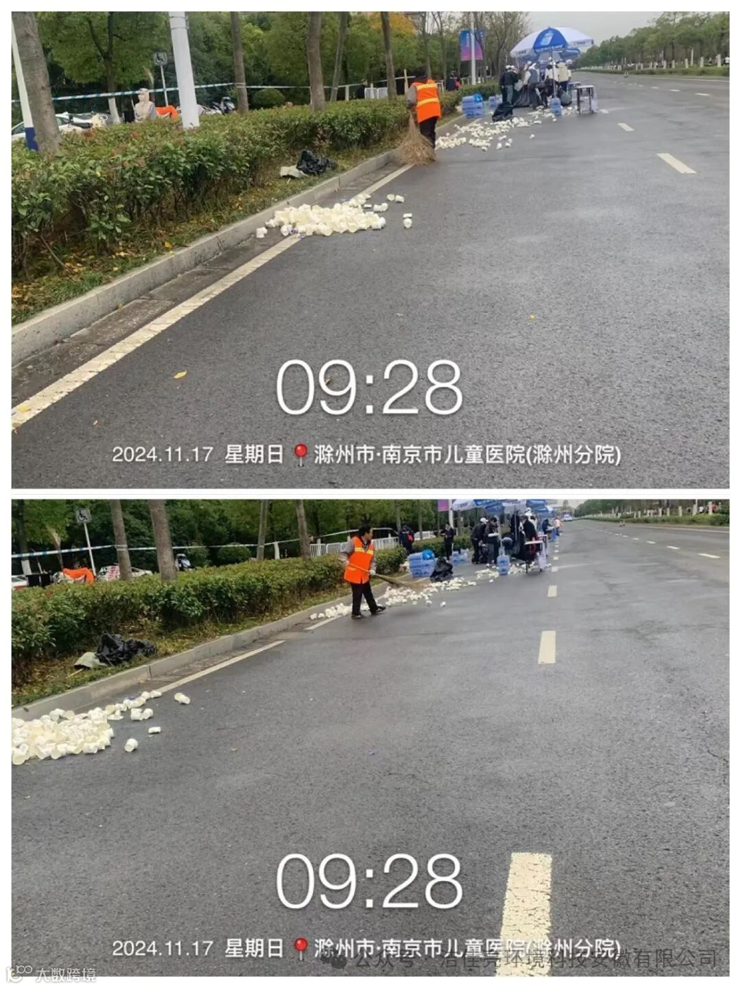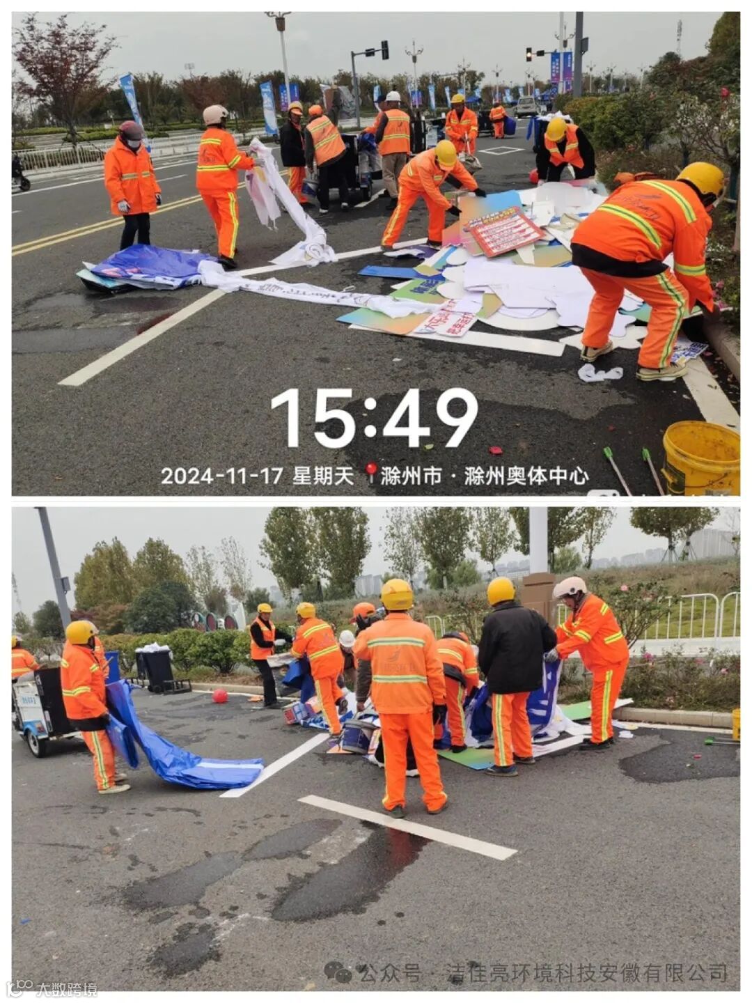 2024年11月17日8点滁州马拉松比赛鸣枪开跑!洁佳亮环境为做好赛道沿线及周边环境卫生保障工作,提前开展实地调研,对赛事路段分区策划,提前筹备部署,制定精细化卫生保障工作方案。全力投入到前期保障工作当中,旨在为赛事营造良好卫生环境,确保“滁马”顺利开赛。