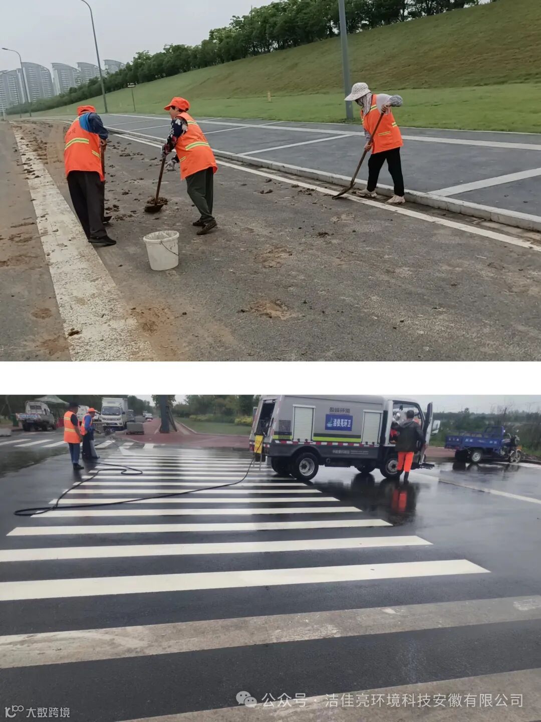 暴雨过后,大量泥沙、垃圾被雨水冲到人行道和机动车道,使原本整洁的道路变成了布满垃圾的黄色泥沙路。为了及时恢复道路的干净整洁,洁佳亮环境立即组织人员、安排车辆冲洗淤泥、清铲泥土…… 恶劣的天气让清扫变得费时费力,但他们坚守一线,在不懈的奋战下,及时清除了路面垃圾,恢复了路面得干净整洁,确保车辆和行人得正常通行,充分发挥了本次暴雨天气的应急保障作用。